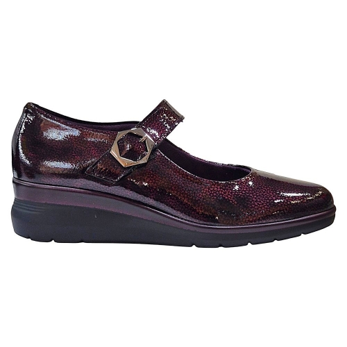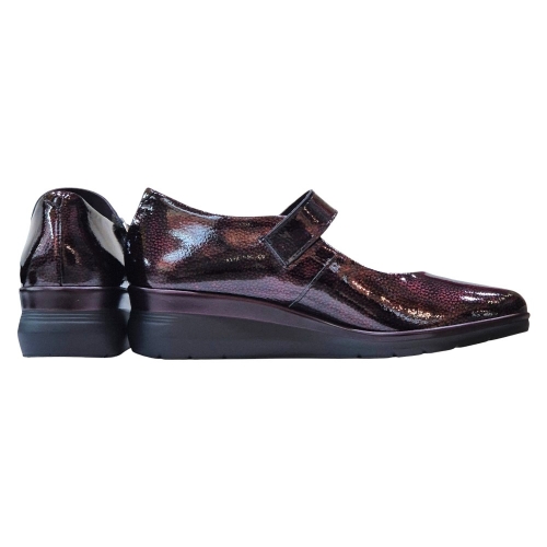 Material Exterior: Piel charol fantasía en un profundo y sofisticado color burdeos. Este acabado aporta un brillo sutil y una textura única, siendo fácil de limpiar y mantener.