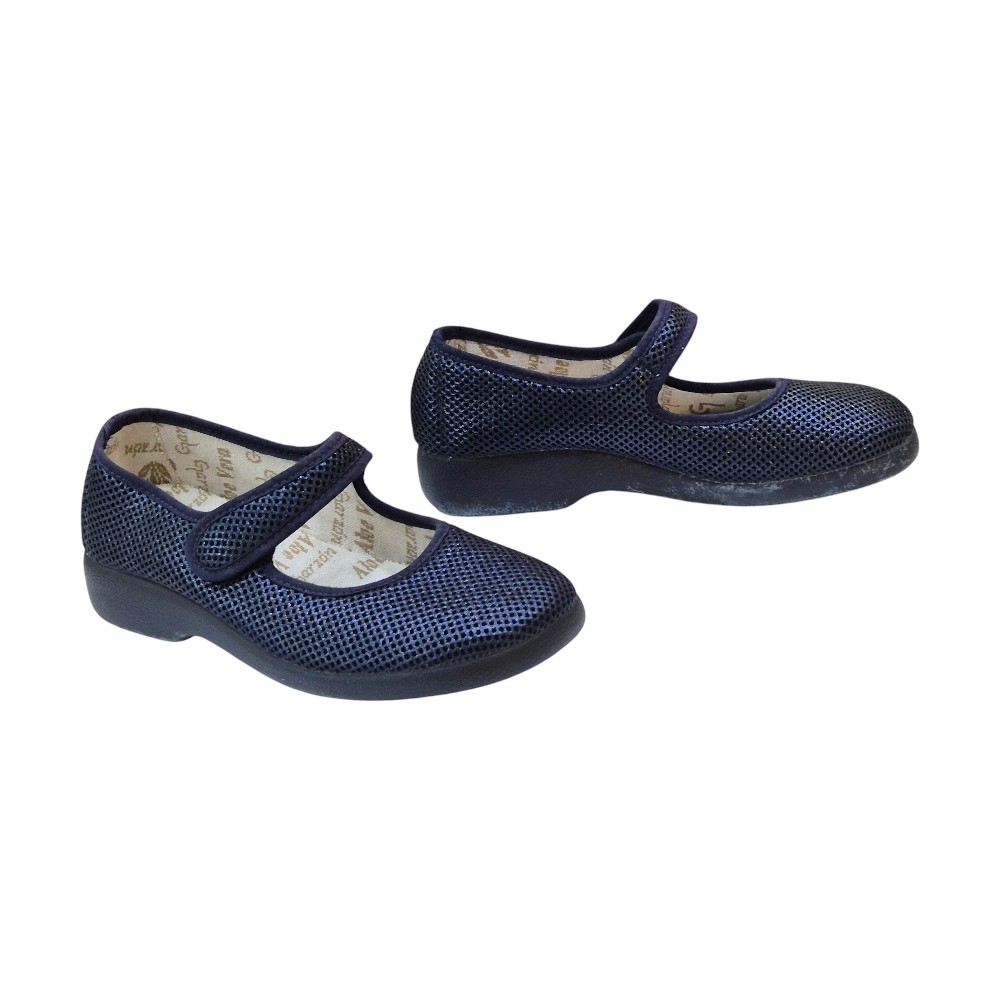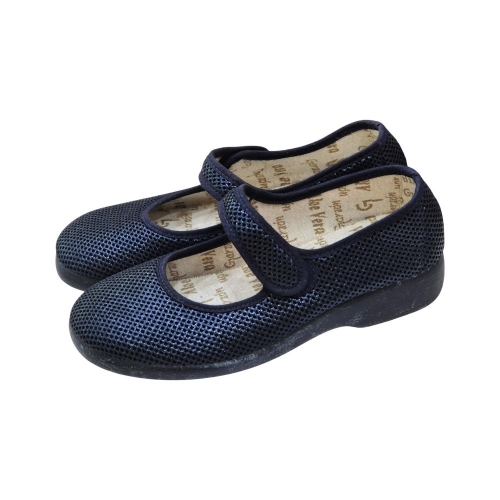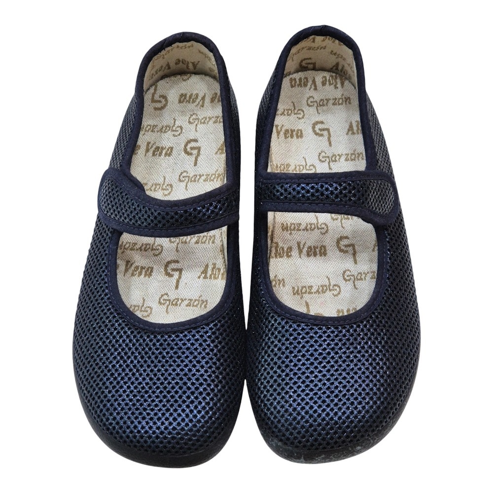 Diseño Transpirable: Fabricadas con un tejido de rejilla trenzada en color azul marino que permite la circulación constante del aire, manteniendo tus pies frescos y secos durante todo el día.
