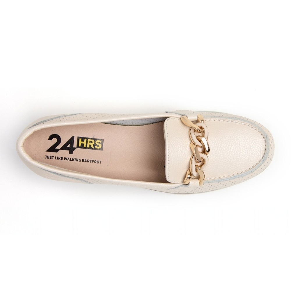 Siente la libertad de caminar como si fueras descalza. El modelo 26711 de la prestigiosa marca española 24 HRS es la combinación perfecta entre la artesanía tradicional y la tecnología de confort más avanzada. Diseñado para la mujer que no quiere renunciar a la elegancia en su día a día, este mocasín en color Natural Lino aporta una sofisticación atemporal a cualquier conjunto.