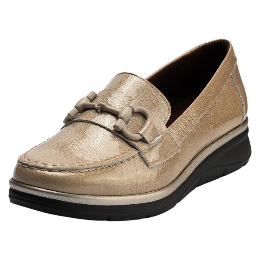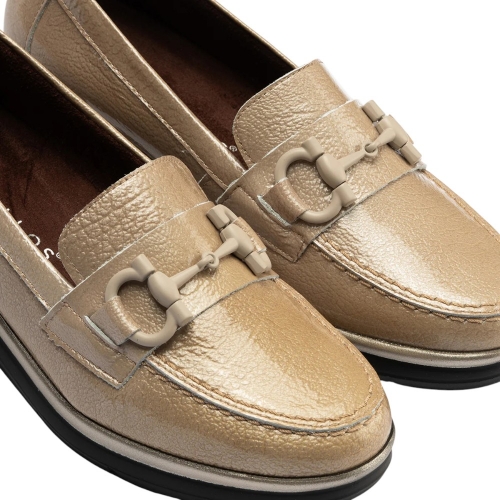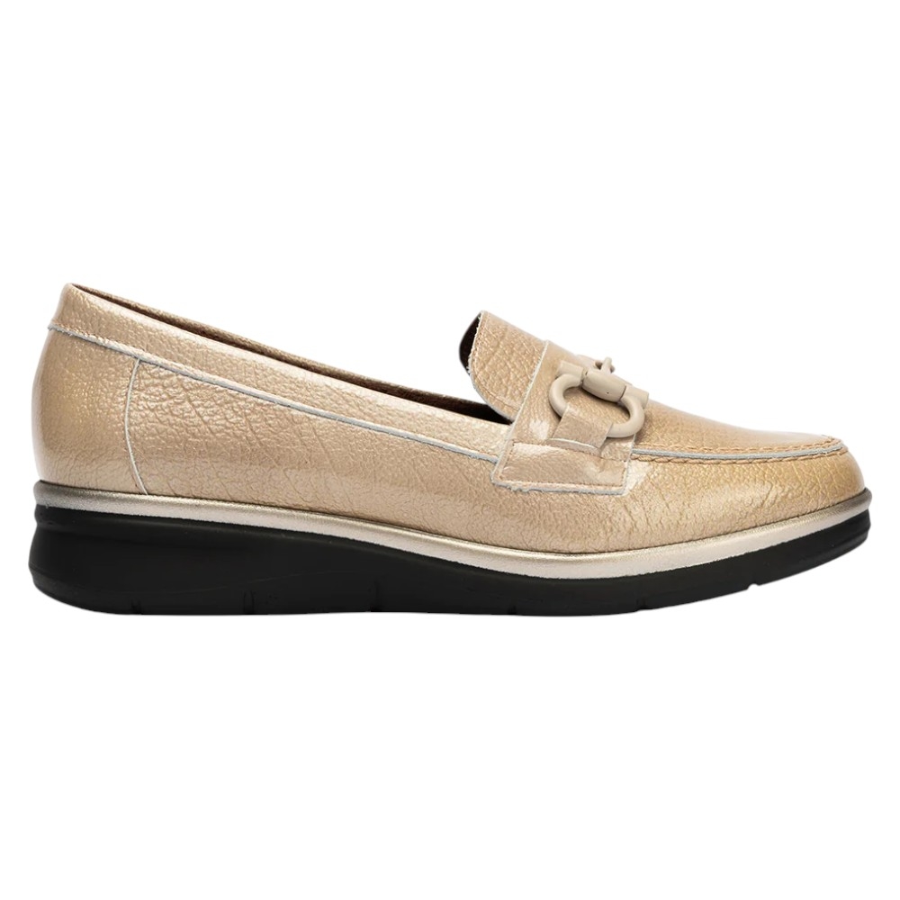 Sofisticado, versátil y siempre a la moda, este mocasín en color Piedra es la elección perfecta para la mujer que busca un equilibrio entre estilo y comodidad. Su confección en Piel Charol con un sutil efecto texturizado irradia un brillo discreto que realzará cualquier look, desde el más casual hasta el más formal.