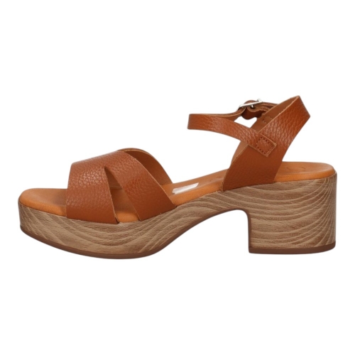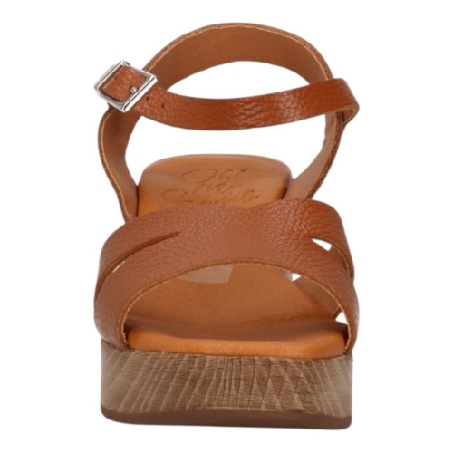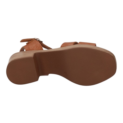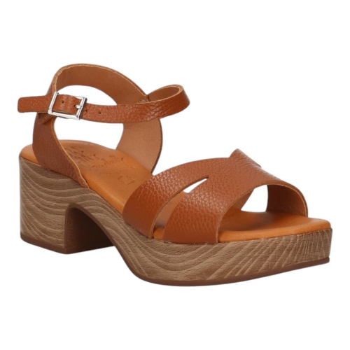 Sandalia de mujer con tacón fabricada en piel marrón con suave grabado. Diseño original en su parte delantera y cierre en hebilla para mayor sujeción y comodidad. Suela con tacón y plataforma, la sandalia Pamela es ideal para lucir pies bonitos en cualquier acontecimiento.