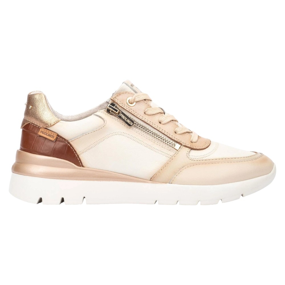 Entra en un nuevo nivel de confort diario con la colección Cantabria de Pikolinos. Estas zapatillas para mujer son una opción moderna y versátil, diseñadas para combinar sin esfuerzo con tu estilo mientras te aseguran una pisada ligera y amortiguada. Confeccionadas con una mezcla de piel de vacuno y caprino de primera calidad, el hermoso color Nata (crema/blanco roto) se complementa con elegantes detalles metálicos, dándoles un aspecto sofisticado y atractivo.