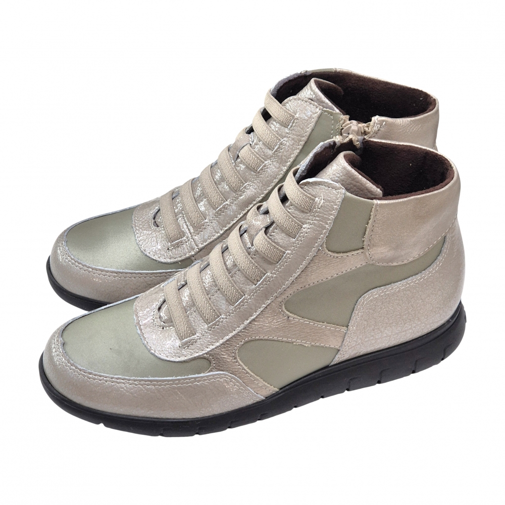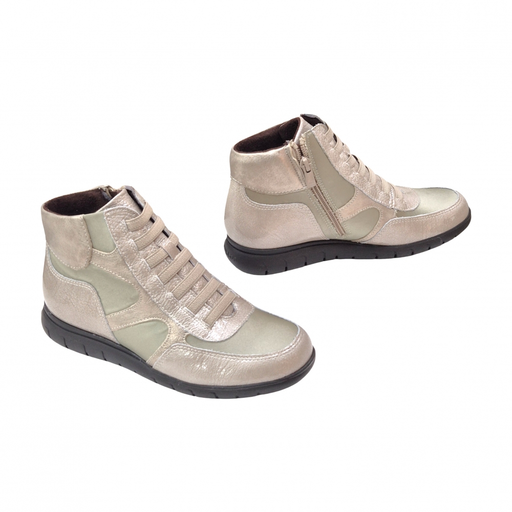Doble Sistema de Cierre: Para asegurar un ajuste óptimo, cuenta con cordones frontales que permiten regular la sujeción a la medida de tu pie. Además, la cremallera lateral garantiza un calce y descalce rápido y sumamente cómodo.