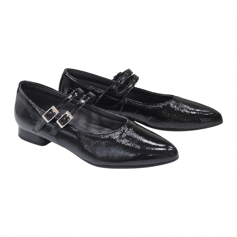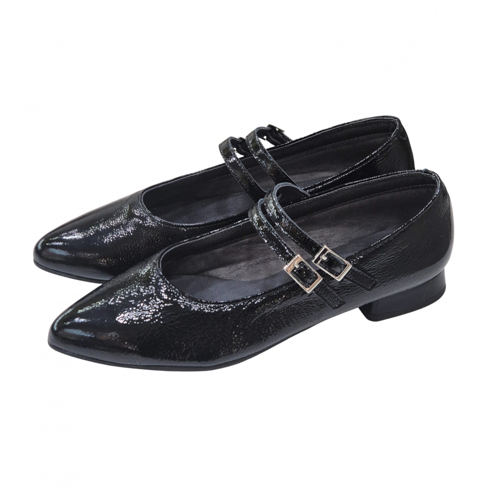 El acabado en charol negro de alta calidad proporciona un brillo distintivo que eleva cualquier conjunto, haciéndolas perfectas para la oficina, eventos o un look diario pulido.