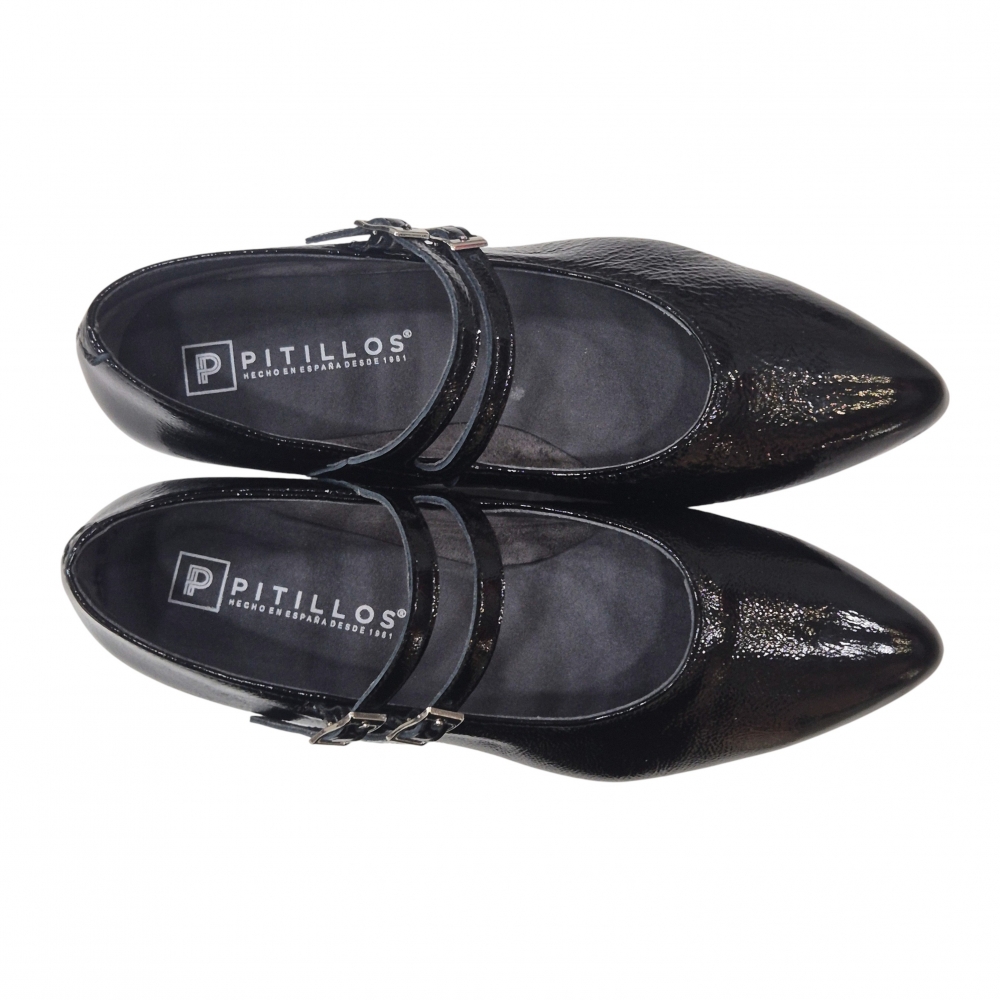 Las Pitillos 10840 son extremadamente versátiles. Su color negro clásico y su acabado brillante se adaptan perfectamente a estilismos formales, como trajes de pantalón o faldas midi, y también aportan un toque de refinamiento a atuendos más casuales. Son el equilibrio ideal entre una bailarina clásica y un zapato de vestir cómodo.