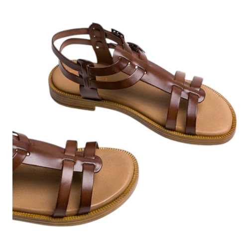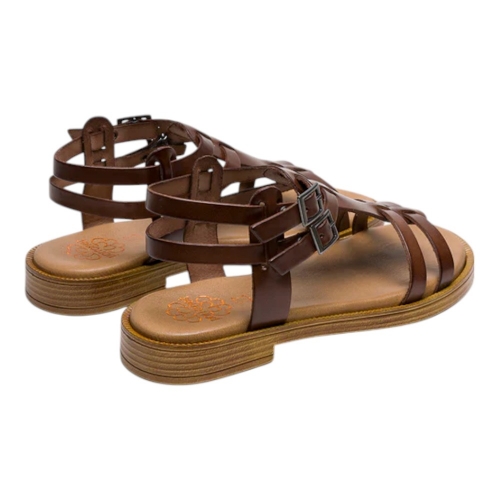 El talón cuenta con una tira envolvente con cierre de hebilla, proporcionando una sujeción adicional y estabilidad al caminar. La silueta de la sandalia es plana, ideal para el uso diario y para quienes buscan confort sin renunciar al estilo.