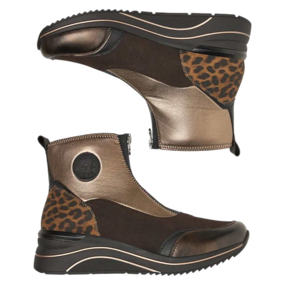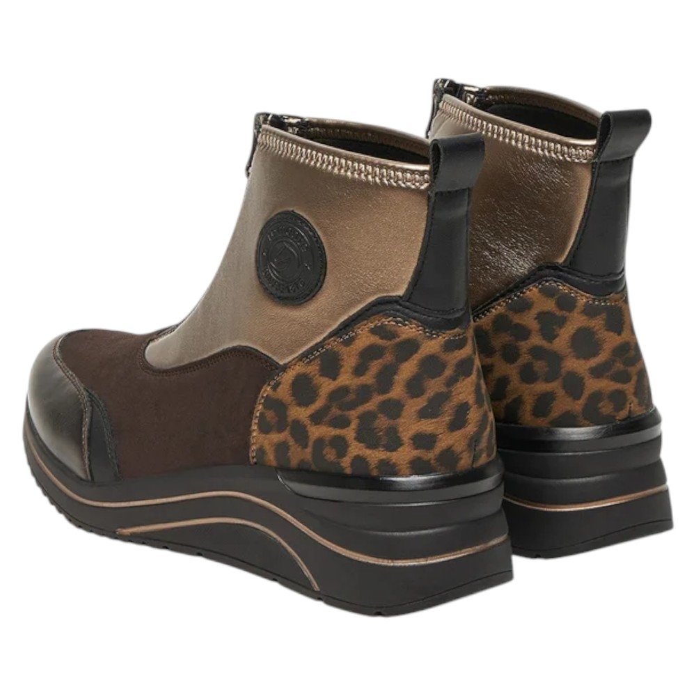 Descubre el estilo audaz y la comodidad inigualable con los botines de cuña Remonte D0T78-90. Este modelo combina un diseño moderno y deportivo con un toque de sofisticación gracias a su estampado de leopardo y sus detalles metalizados. Ideales para la mujer que busca destacar sin renunciar al confort en su día a día.