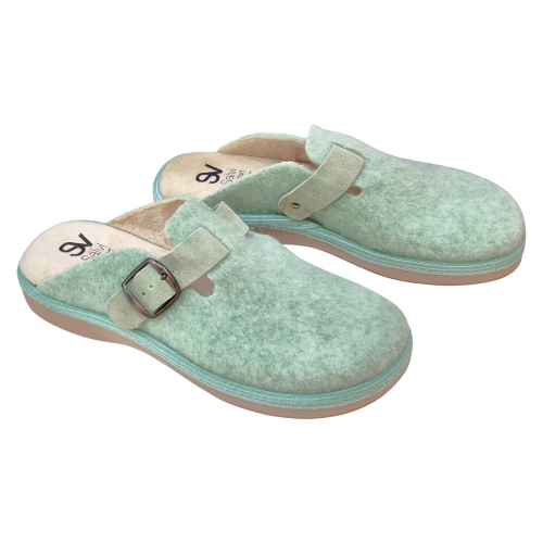 Material Suave y Transpirable: La parte superior está confeccionada en un material suave de color verde claro (Elfo Aguamar) con una textura jaspeada única, que ofrece una sensación agradable y un aspecto acogedor y atractivo.
