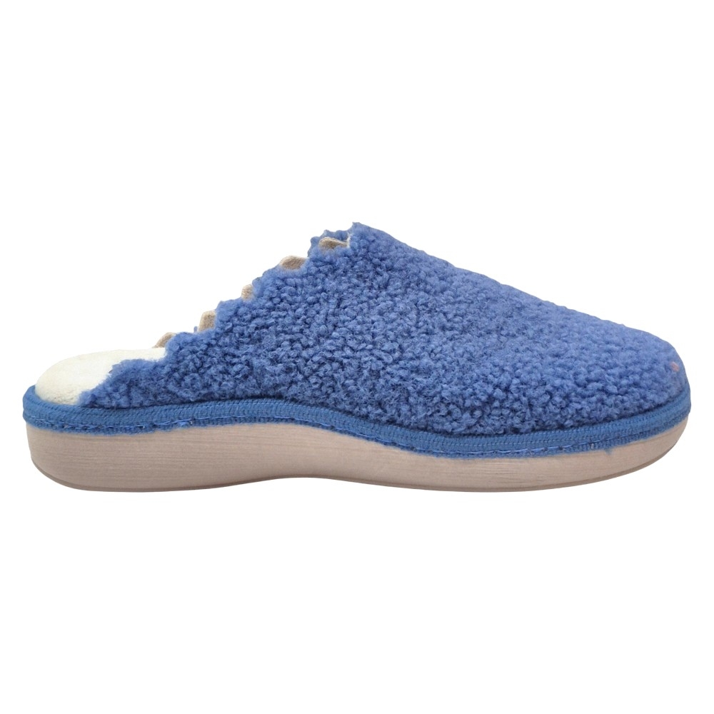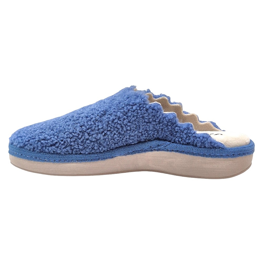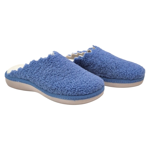 Material Exterior Abrigador: El cuerpo de la zapatilla está confeccionado en un tejido con un acabado de borreguito o efecto 'Teddy', muy suave al tacto y eficaz para retener el calor, manteniendo los pies perfectamente abrigados. El color es un atractivo índigo.
