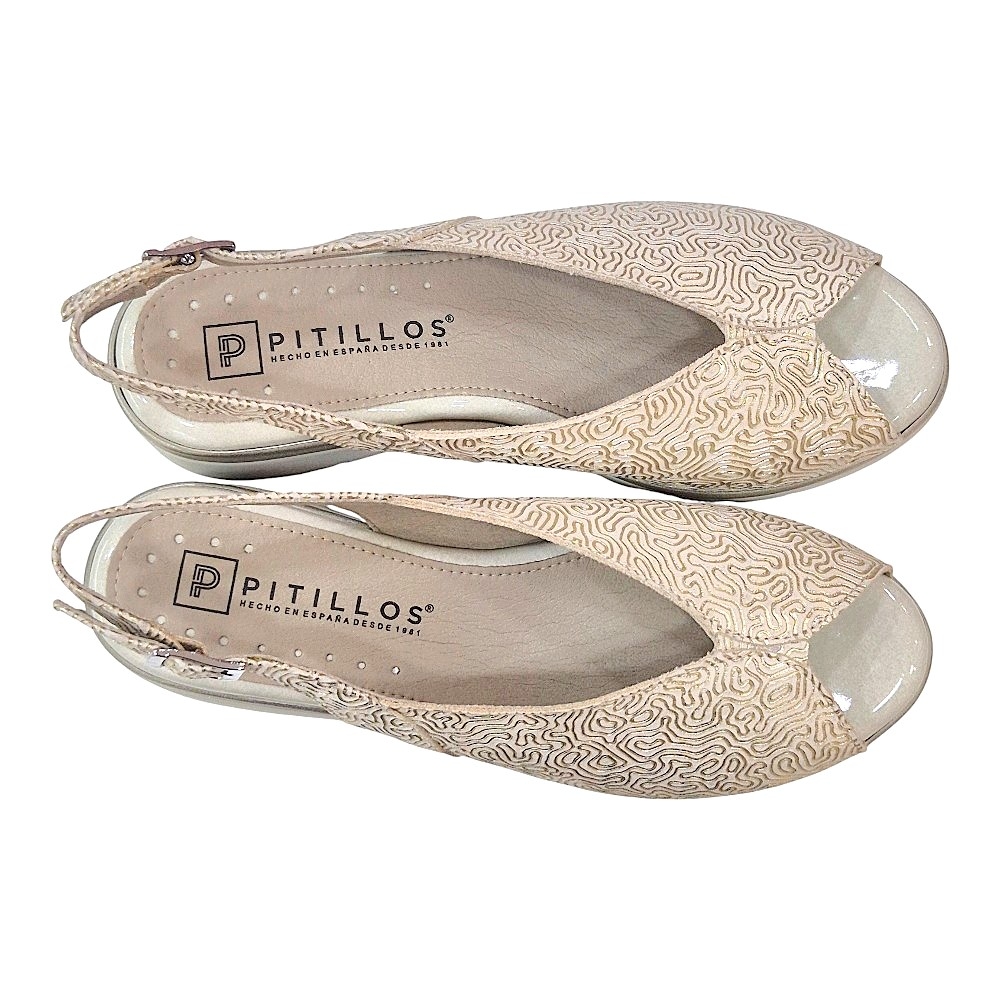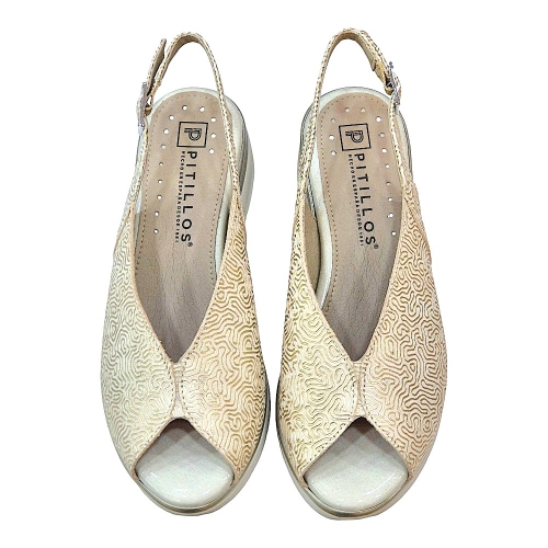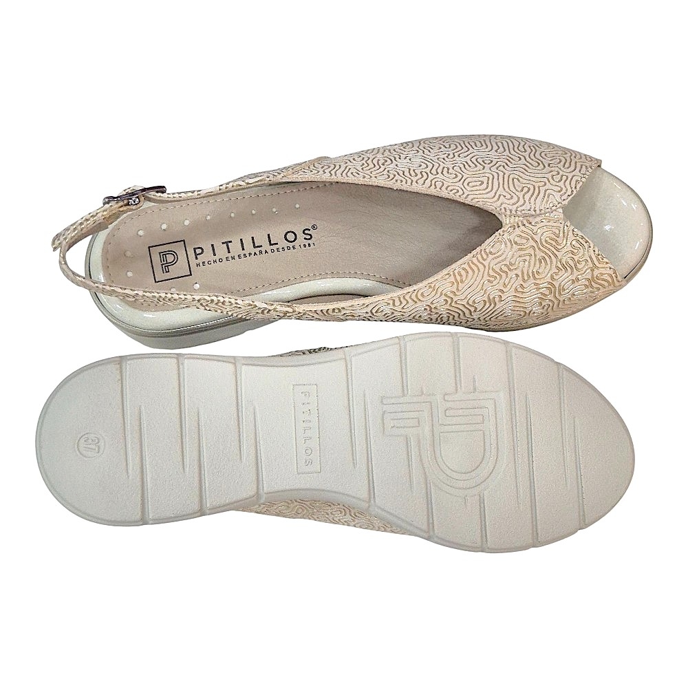 Descubre la combinación perfecta entre diseño sofisticado y bienestar absoluto con esta sandalia de la reconocida marca Pitillos. El modelo 11044 destaca por su acabado metalizado y su estructura pensada para acompañarte durante todo el día sin renunciar al estilo.