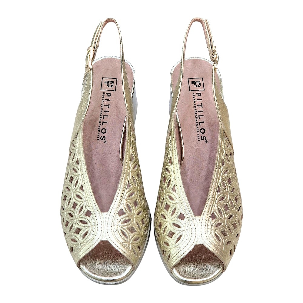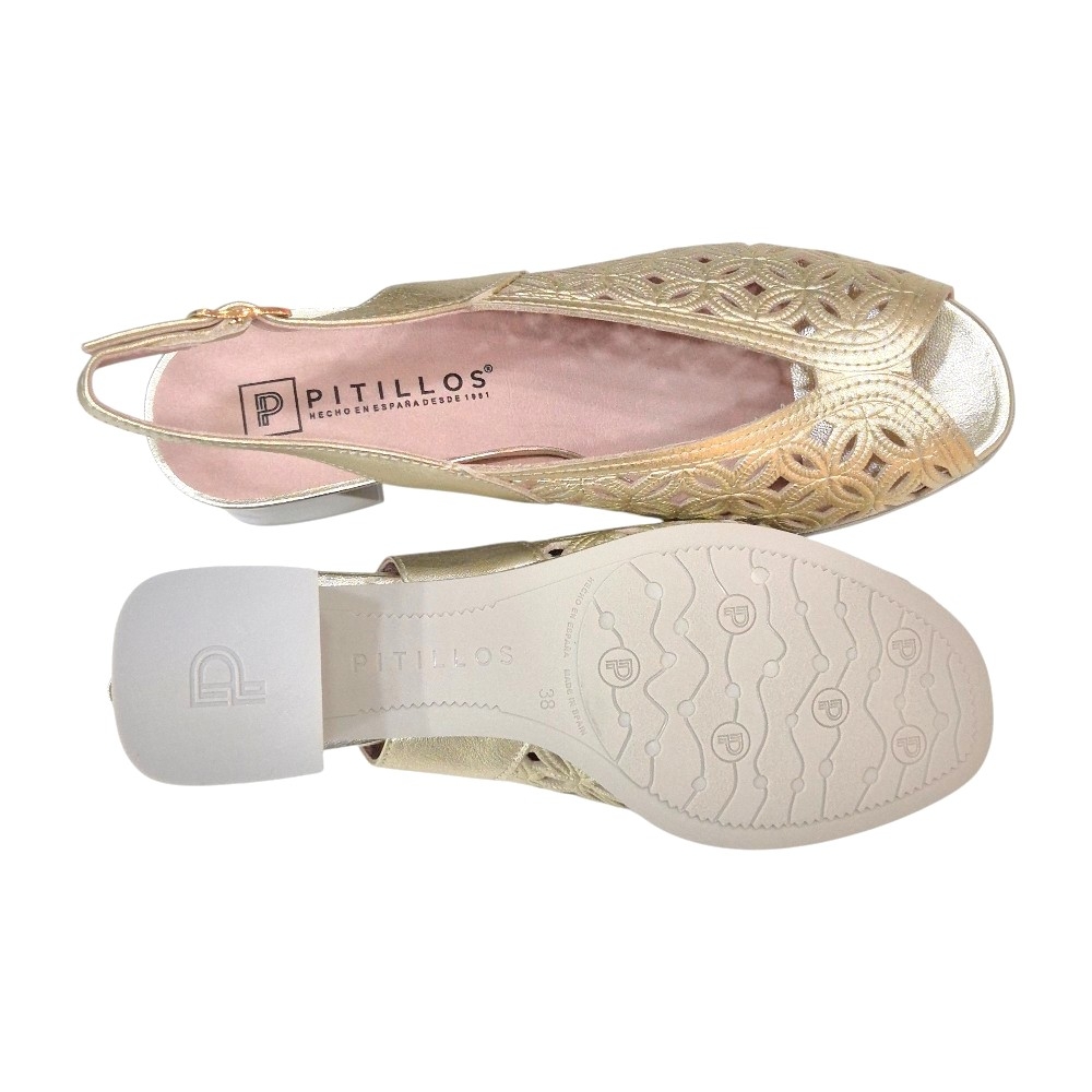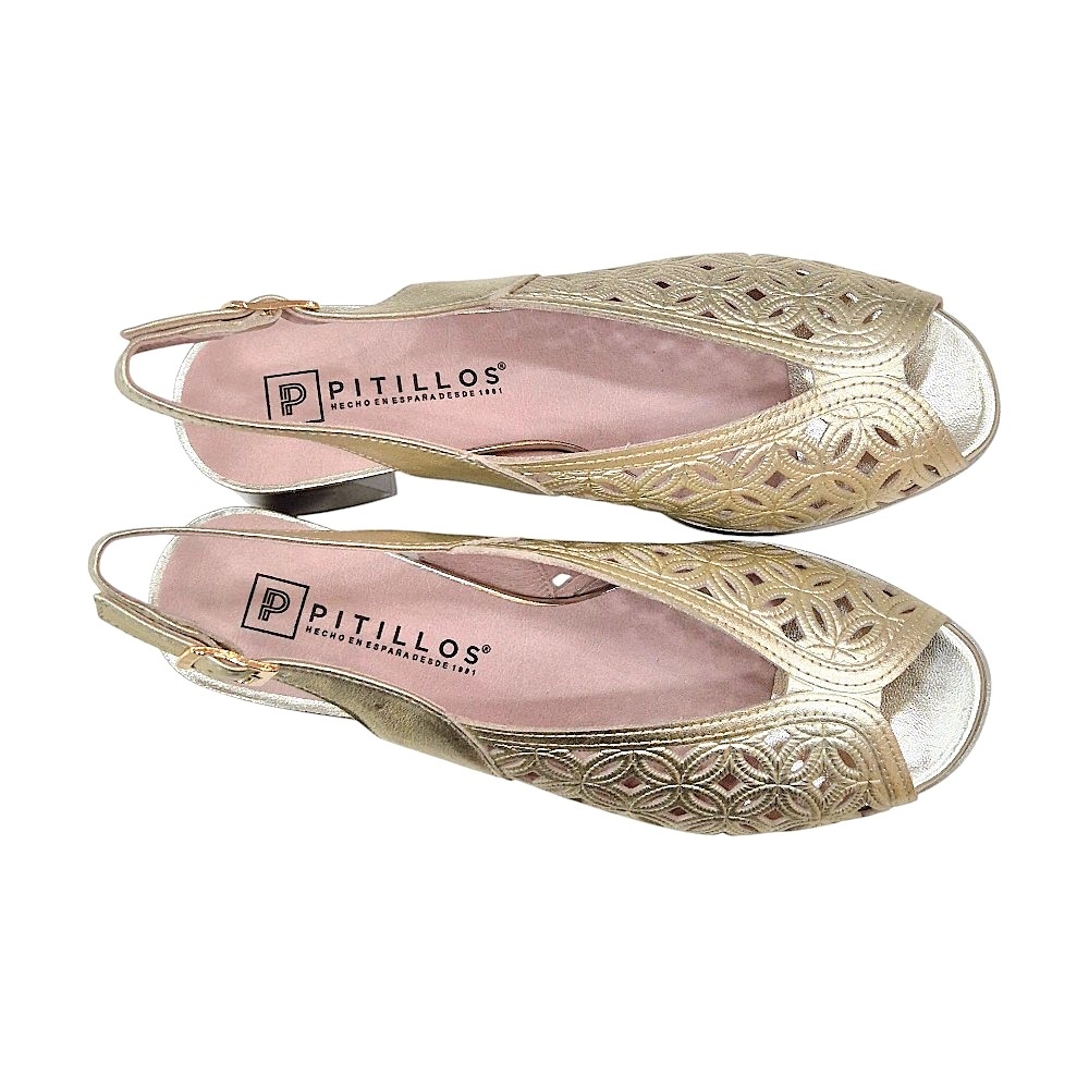 Actualiza tu colección de calzado con esta sofisticada sandalia de la reconocida marca Pitillos. El modelo 11210 destaca por su exquisito acabado en tono oro, ideal para eventos especiales o para elevar un conjunto diario con un toque de distinción.
