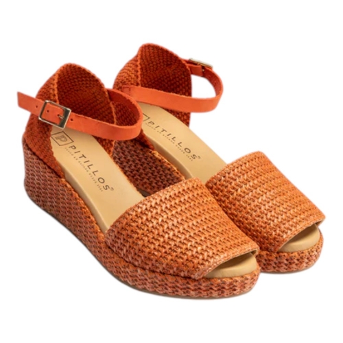 ¡Deslumbra esta temporada con las sandalias de cuña Pitillos en color naranja!