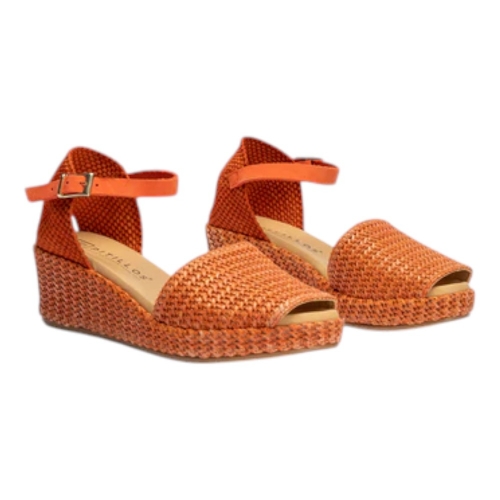 Estas sandalias de cuña Pitillos en color naranja son la elección perfecta para combinar con tus vestidos, faldas o pantalones favoritos esta temporada. Su diseño versátil te permitirá lucirlas tanto en tus paseos por la ciudad como en tus escapadas de fin de semana.