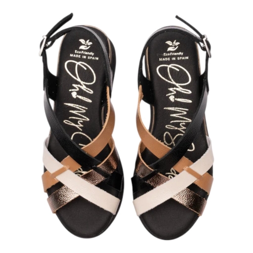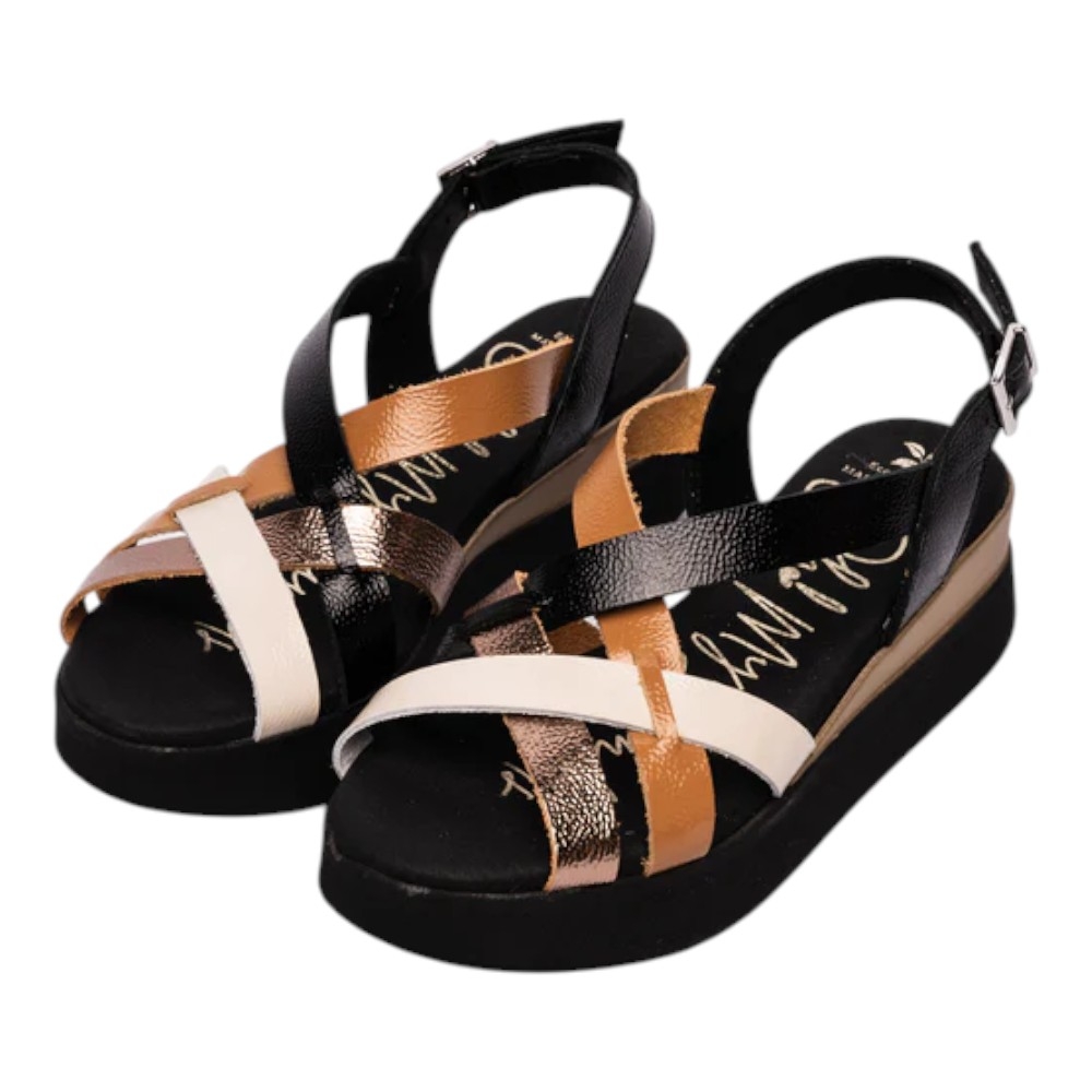 sandalias mujer, piel brillante, efecto charol, tiras cruzadas, color negro, color camel, color champán, color blanca, suela original, detalle metalizado, planta acolchada, plataforma 2.7cm, comodidad diaria, altura tacón 4.8cm, suela goma, planta microfibra ecofriendly, Oh My Sandals.