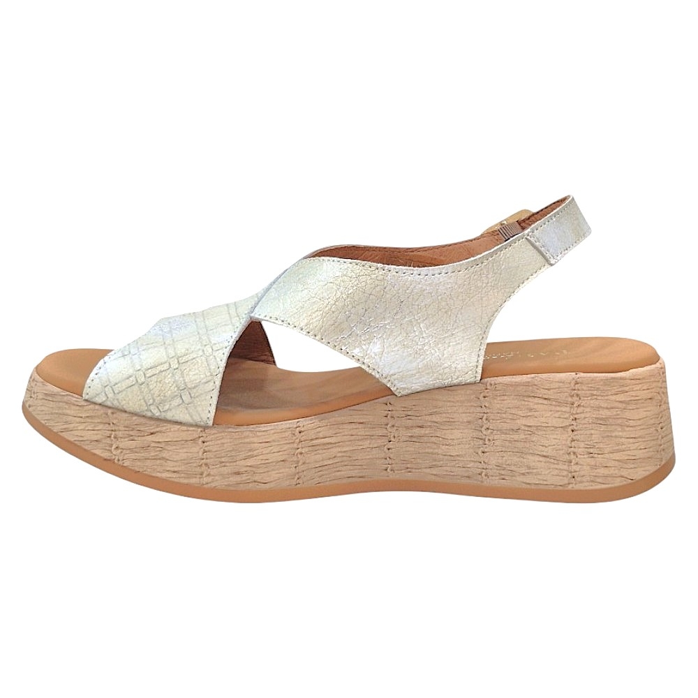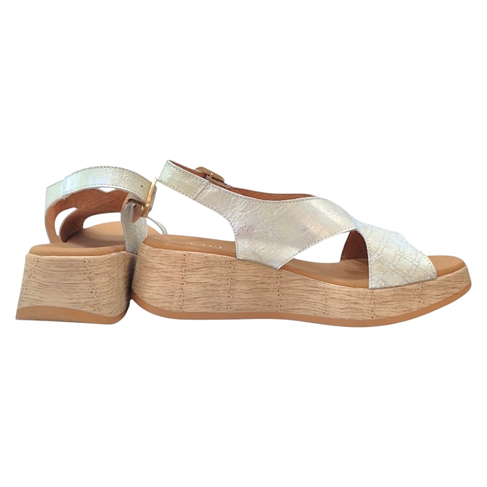 Confort Elevado: Incorpora una cómoda plataforma con efecto de cuña que proporciona altura sin sacrificar la estabilidad. La suela, con un acabado texturizado que simula la rafia o esparto, añade un toque natural y veraniego.