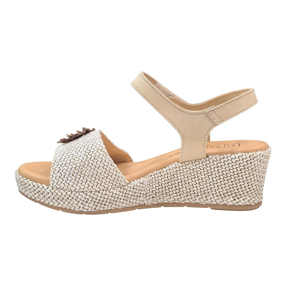 Suela de Cuña: Presenta un forro trenzado a juego con el diseño, ofreciendo una elevación elegante y ligera.