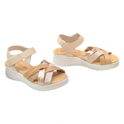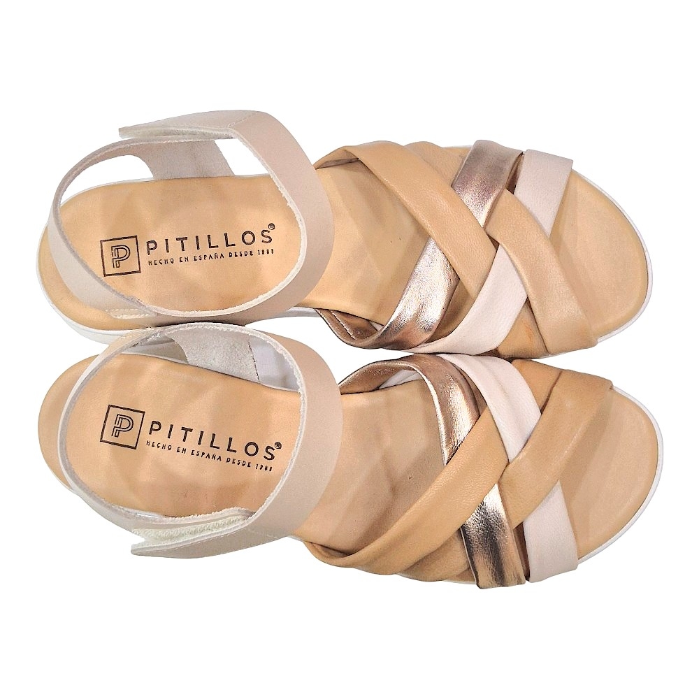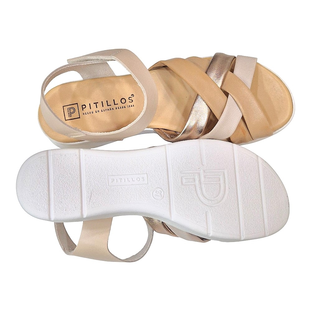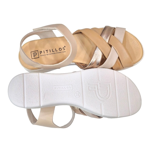 Estas sandalias de la marca Pitillos combinan un diseño sofisticado con una comodidad excepcional, ideales para acompañarte en tus planes de verano y días calurosos. El modelo 11290 destaca por su estética versátil en tono crema, complementada con un juego de texturas que aporta un aire moderno y elegante a cualquier conjunto.