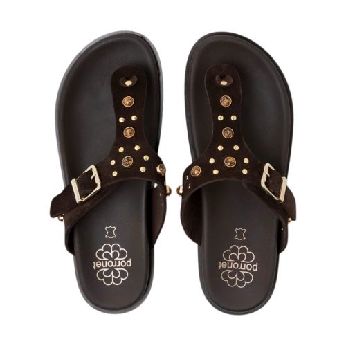 Sandalias Planas de Piel Porronet 3294 Negro con P