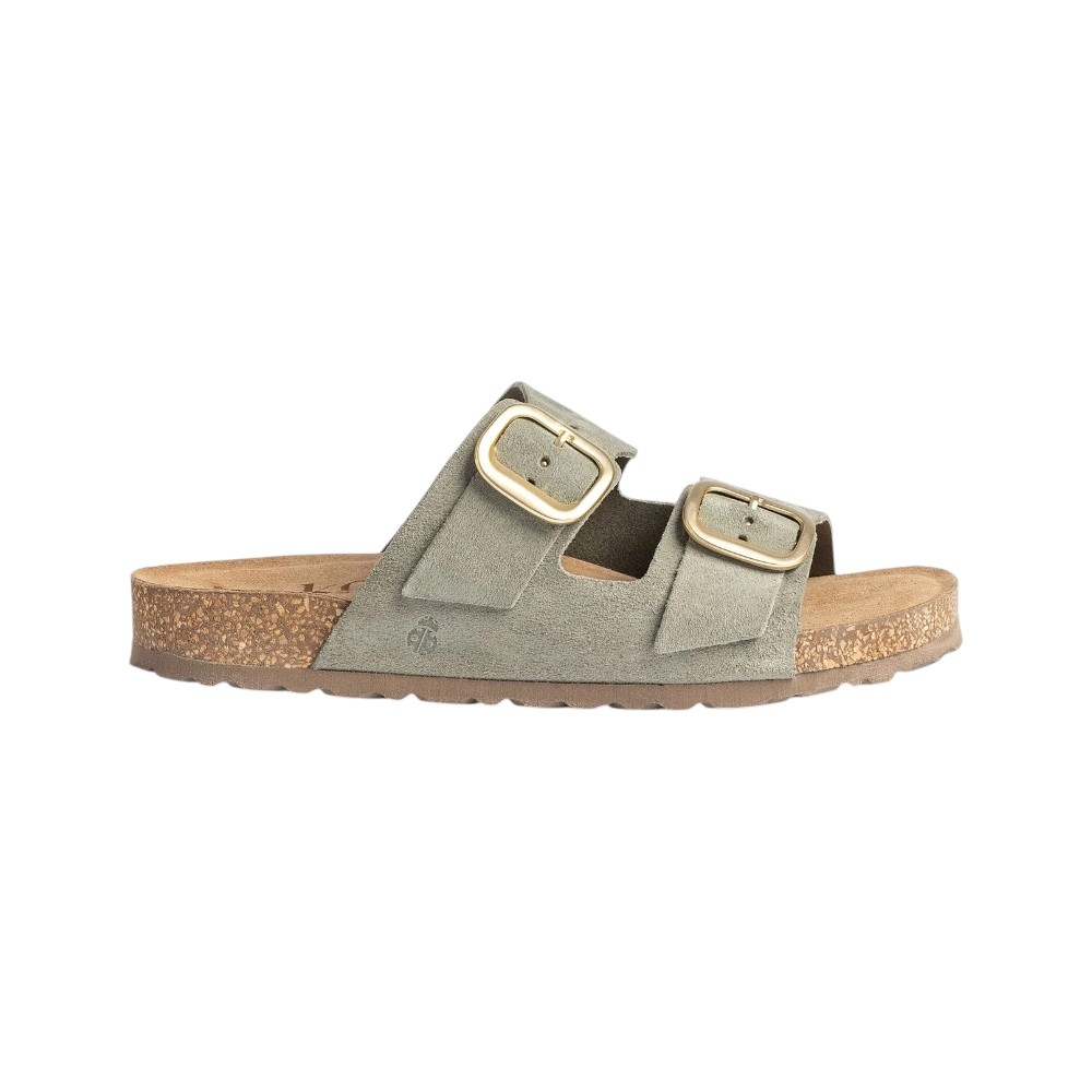 La sandalia está confeccionada en piel vacuna de primera calidad, seleccionada por su suavidad y resistencia. Su acabado en serraje le otorga una textura elegante y natural que se adapta cómodamente a la forma de tu pie.