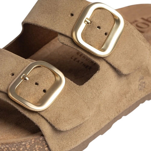 Eleva tu estilo diario sin renunciar al confort con el modelo WIWI-003 de Yokono. Esta sandalia tipo bio destaca por su diseño de doble tira en piel de serraje de alta calidad, un básico imprescindible que se adapta a cualquier look veraniego gracias a su sofisticado tono Mushroom.