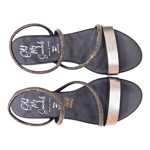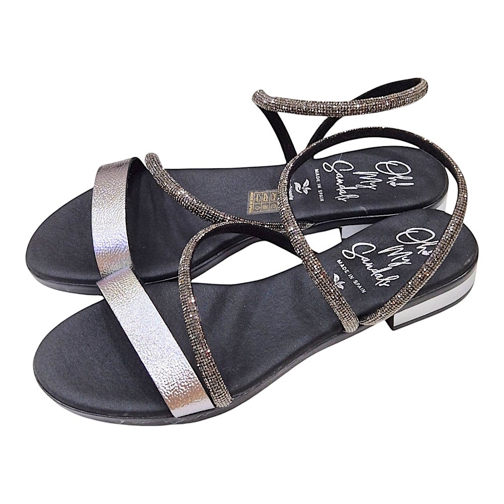 Sumérgete en el estilo y la comodidad con las sandalias planas Oh! My Sandals modelo 5586 en color ACERO CB. Diseñadas y fabricadas en España, estas sandalias son el complemento perfecto para tus looks de verano, aportando un toque de sofisticación y brillo.