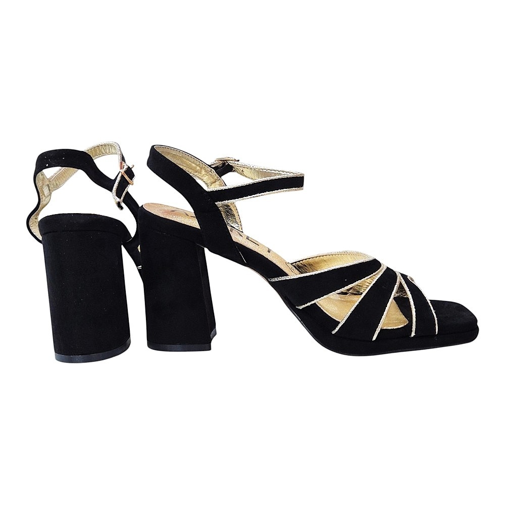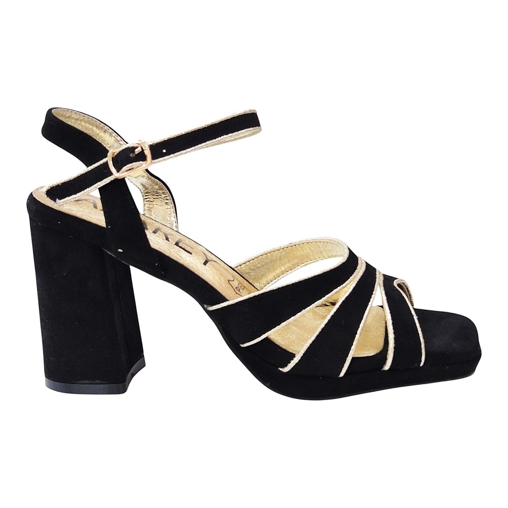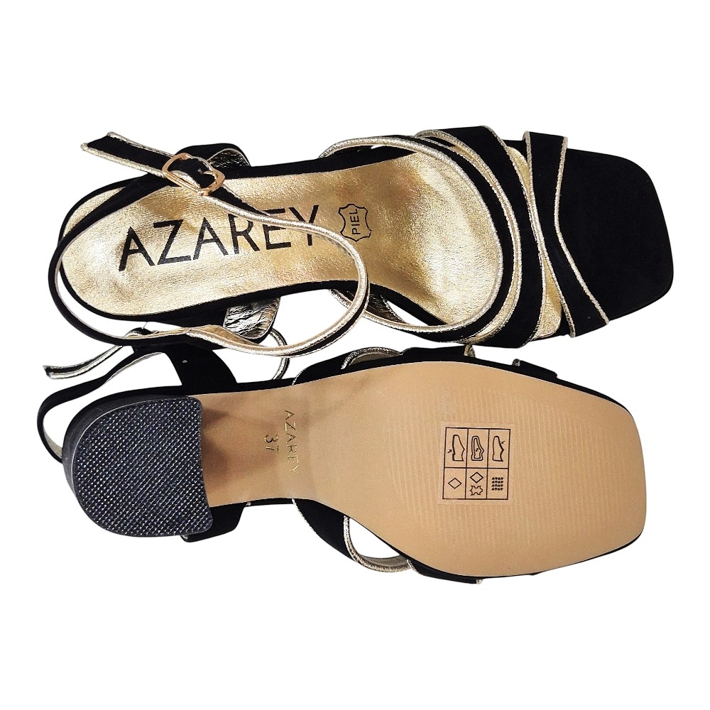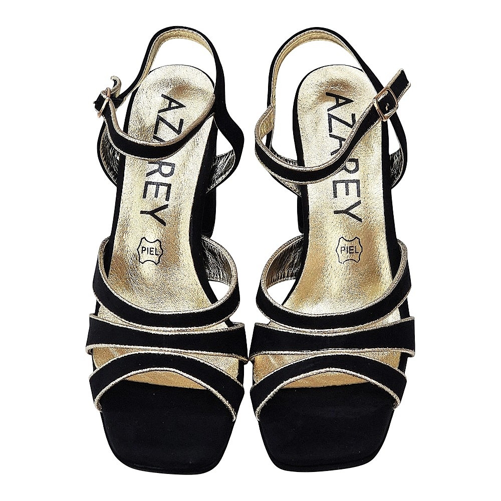 Dale un toque de sofisticación atemporal a tus pasos con la sandalia Azarey Modelo 459L823. Este diseño combina la sobriedad del negro con destellos dorados, creando el equilibrio perfecto entre una sandalia de fiesta y un calzado versátil para eventos especiales.