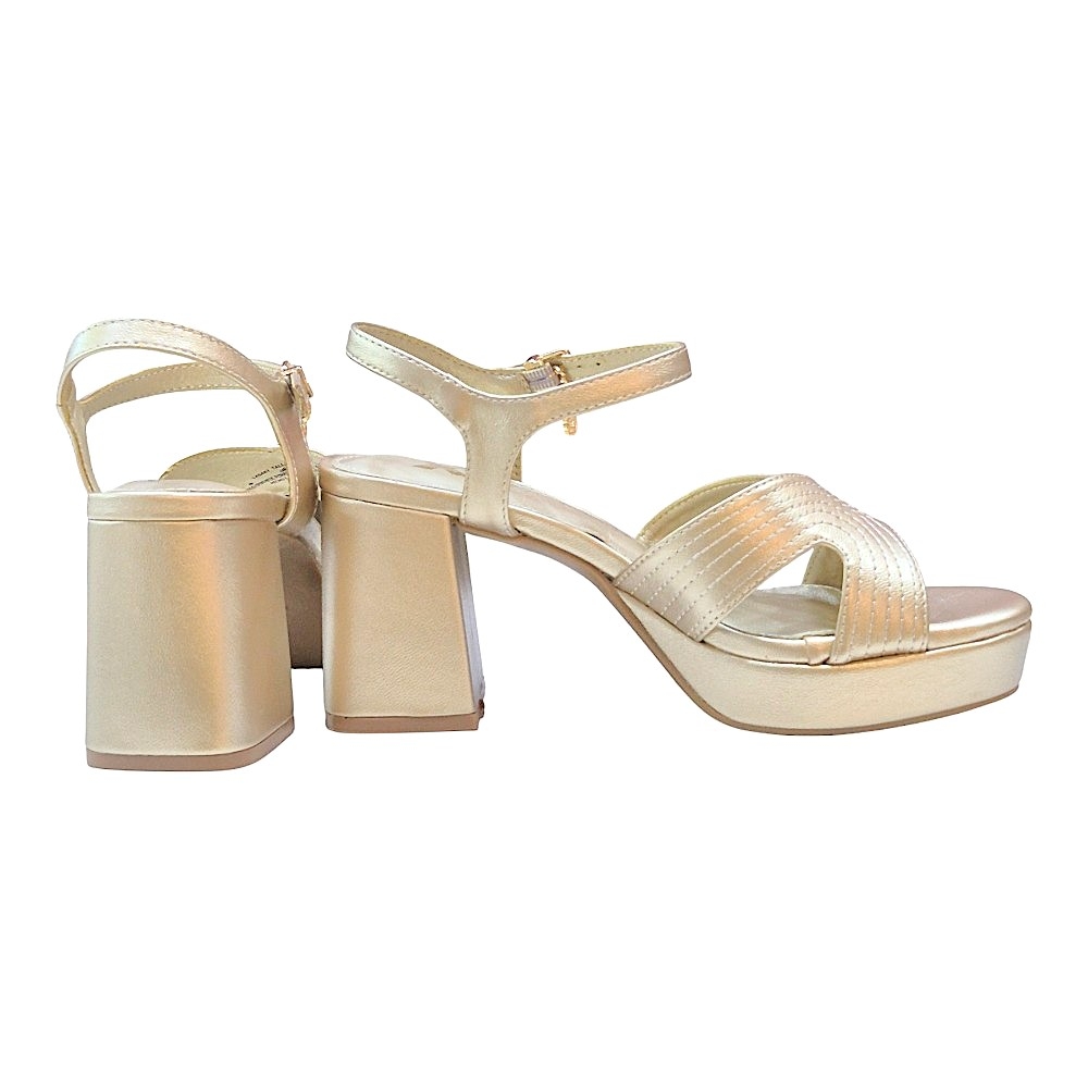 Pensadas para resistir eventos de larga duración, cuentan con un tacón ancho tipo bloque y una plataforma delantera que compensa la altura, reduciendo la presión en el antepié. El cierre mediante hebilla ajustable en el tobillo asegura un calce firme, e incluye un pequeño charm decorativo que añade un detalle femenino y exclusivo de la marca XTI.