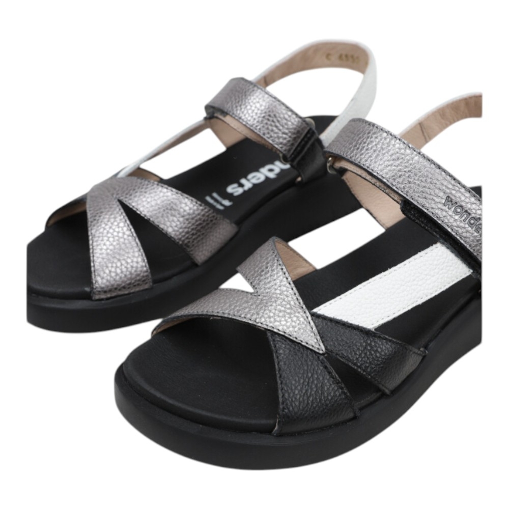 Eleva tu calzado diario con el modelo MAR C-6552 de Wonders, una sandalia que redefine la comodidad sin renunciar a un diseño sofisticado y moderno. Este modelo destaca por su atractiva combinación de pieles en tonos Negro y Plomo, creando un contraste visual elegante que se adapta perfectamente a cualquier look de temporada.