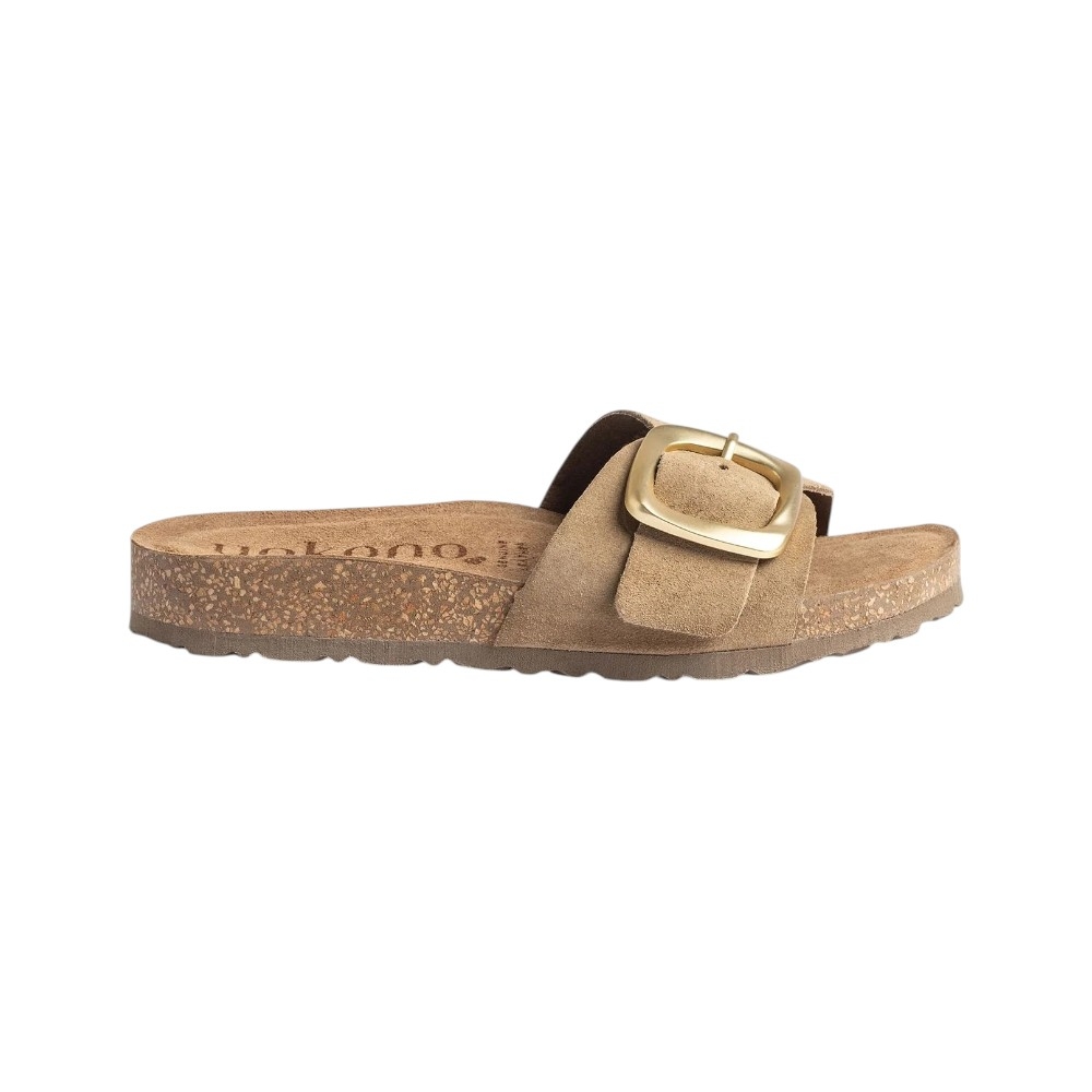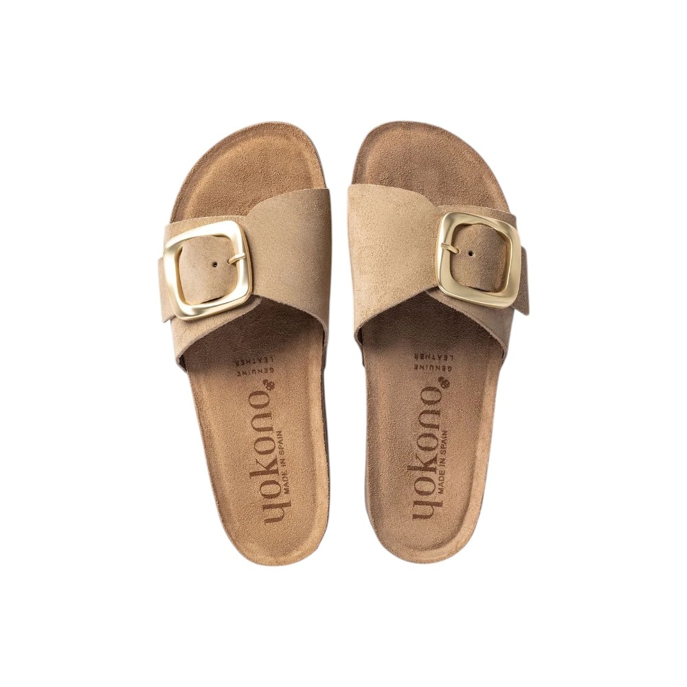 Eleva tus looks diarios con la sandalia plana JERBA-114 de Yokono. Este modelo tipo "bio" es la definición perfecta de calzado funcional: un diseño minimalista y actual que no sacrifica ni un ápice de confort. Su tono Serraje Mushroom (marrón claro) es el neutro ideal para combinar con todo tu armario de verano.