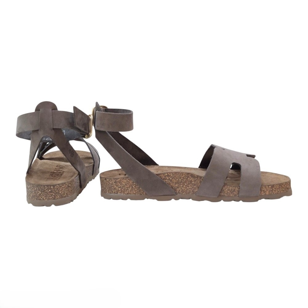 El modelo Jerba destaca por su piel de vacuno de alta calidad con acabado en nobuck, ofreciendo una textura suave y sofisticada. Su color Tabaco es la elección ideal para quienes buscan un tono neutro, cálido y extremadamente fácil de combinar con cualquier outfit veraniego, desde vestidos de lino hasta denim.