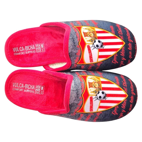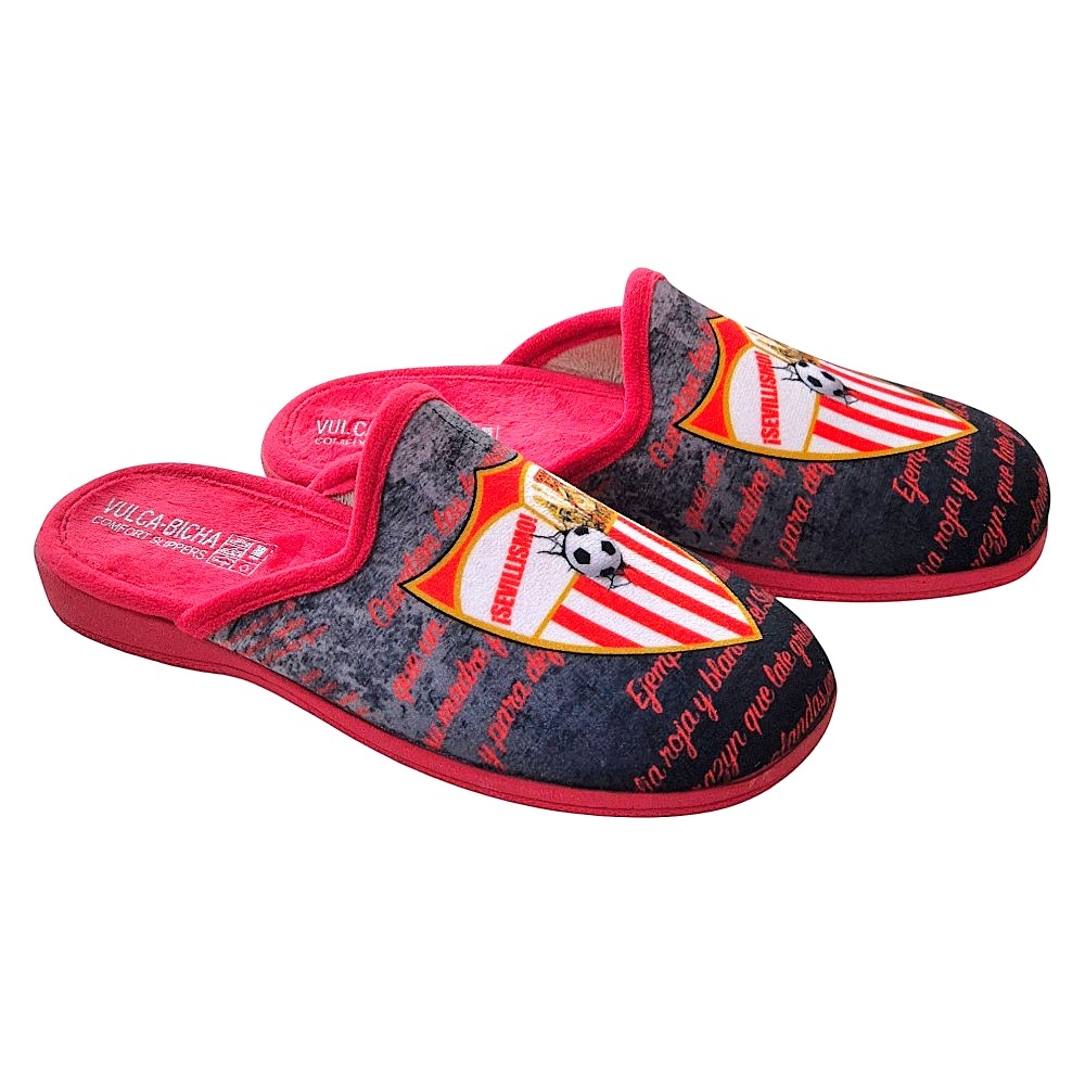 Demuestra tu pasión por el Sevilla Fútbol Club incluso en casa con estas cómodas y originales zapatillas de hogar. Este modelo 900 de la marca española VULCA-BICHA está diseñado exclusivamente para los aficionados sevillistas, combinando confort y un profundo sentido de pertenencia al club.