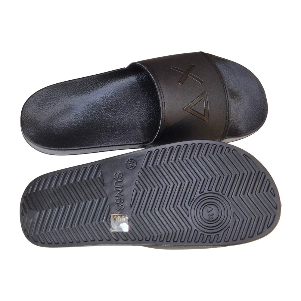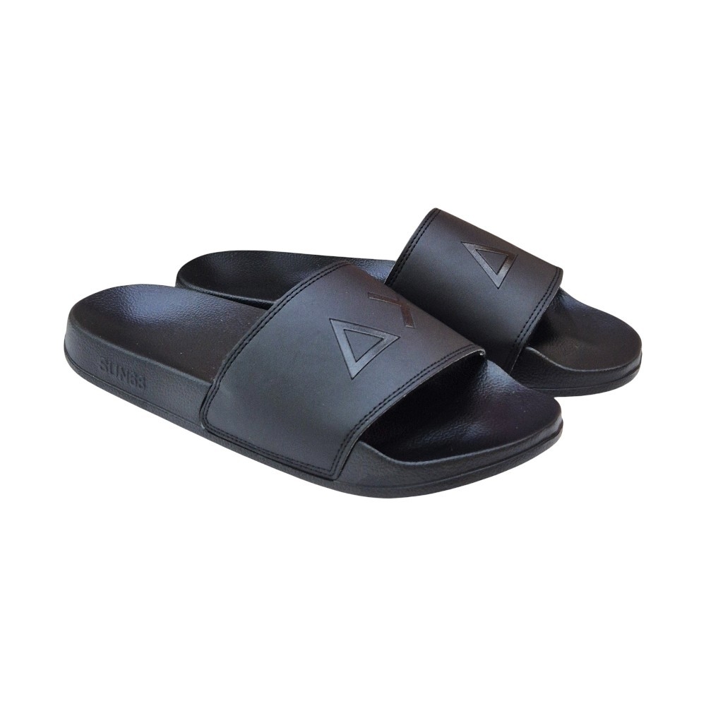 Lleva el estilo distintivo de SUN68 a tus pies con las nuevas Slippers Logo. Estas chanclas de pala combinan un diseño sobrio en color negro integral con los icónicos símbolos de la marca, ofreciendo un calzado ligero, resistente y con una estética urbana impecable.