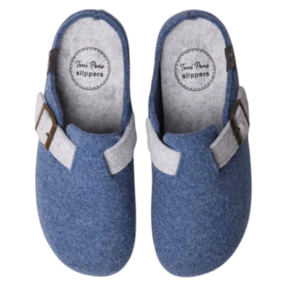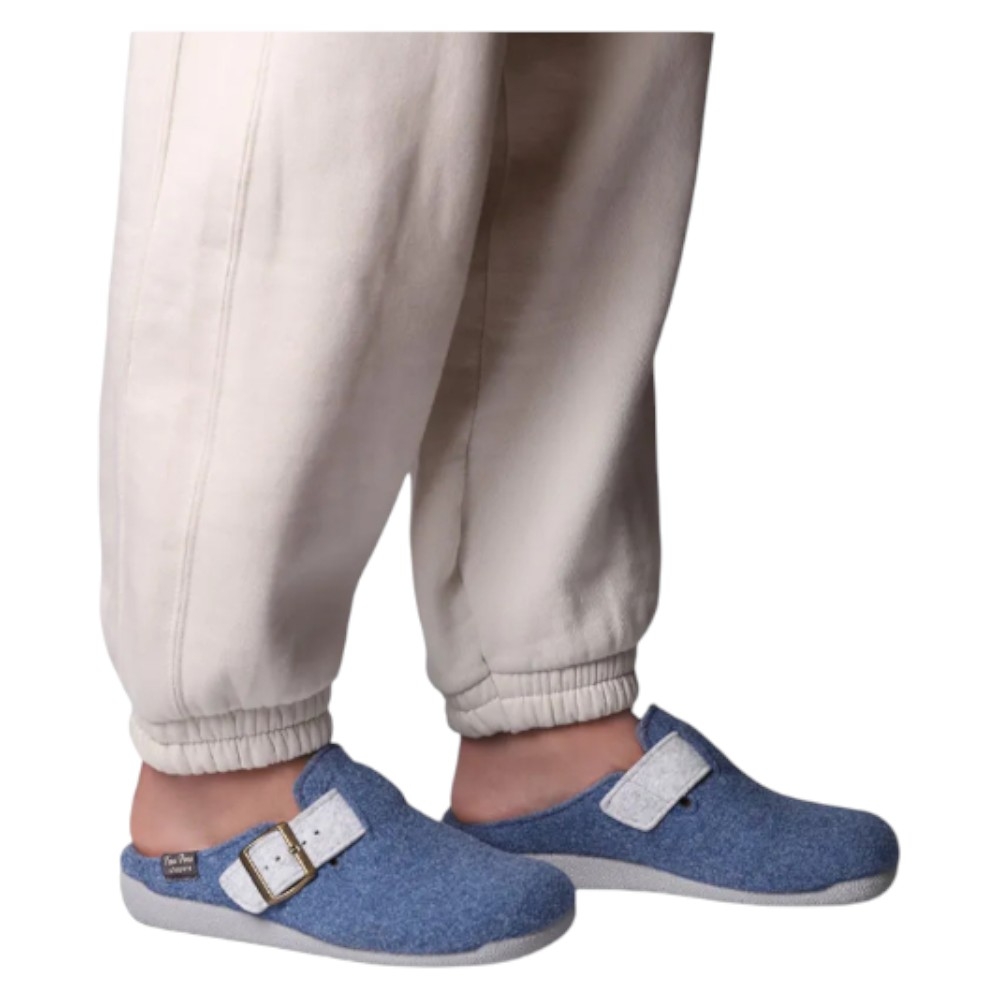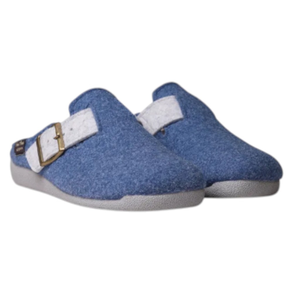 Confeccionadas en fieltro reciclado de alta calidad, estas zapatillas en color TEXA/DENIM (un hermoso azul vaquero) son la elección perfecta para quienes buscan estilo sin renunciar al bienestar.