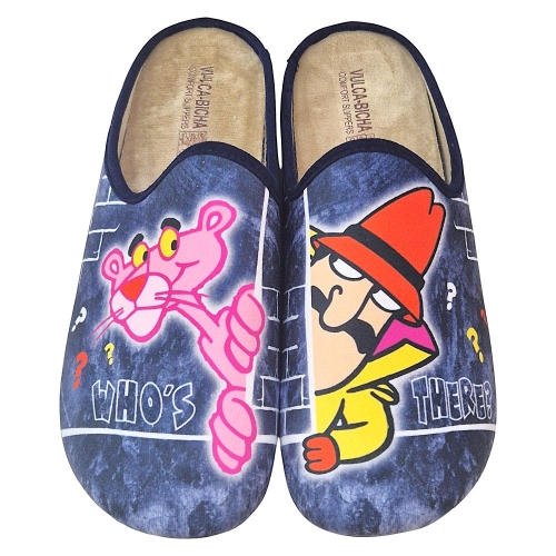 ¡El dúo más emblemático de la comedia y el misterio se une para tu comodidad! Descubre las zapatillas de casa de la marca VULCA-BICHA, un diseño exclusivo que presenta a los dos protagonistas de la clásica saga: la Pantera Rosa y el mismísimo Inspector Jacques Clouseau.