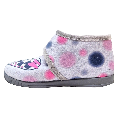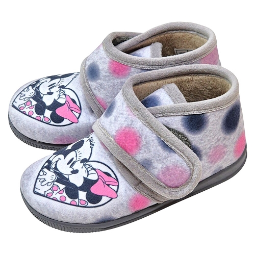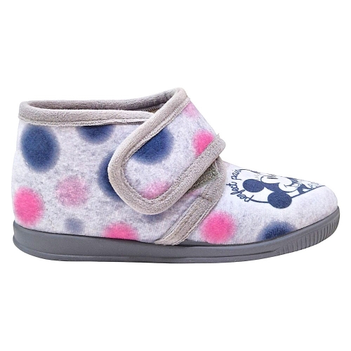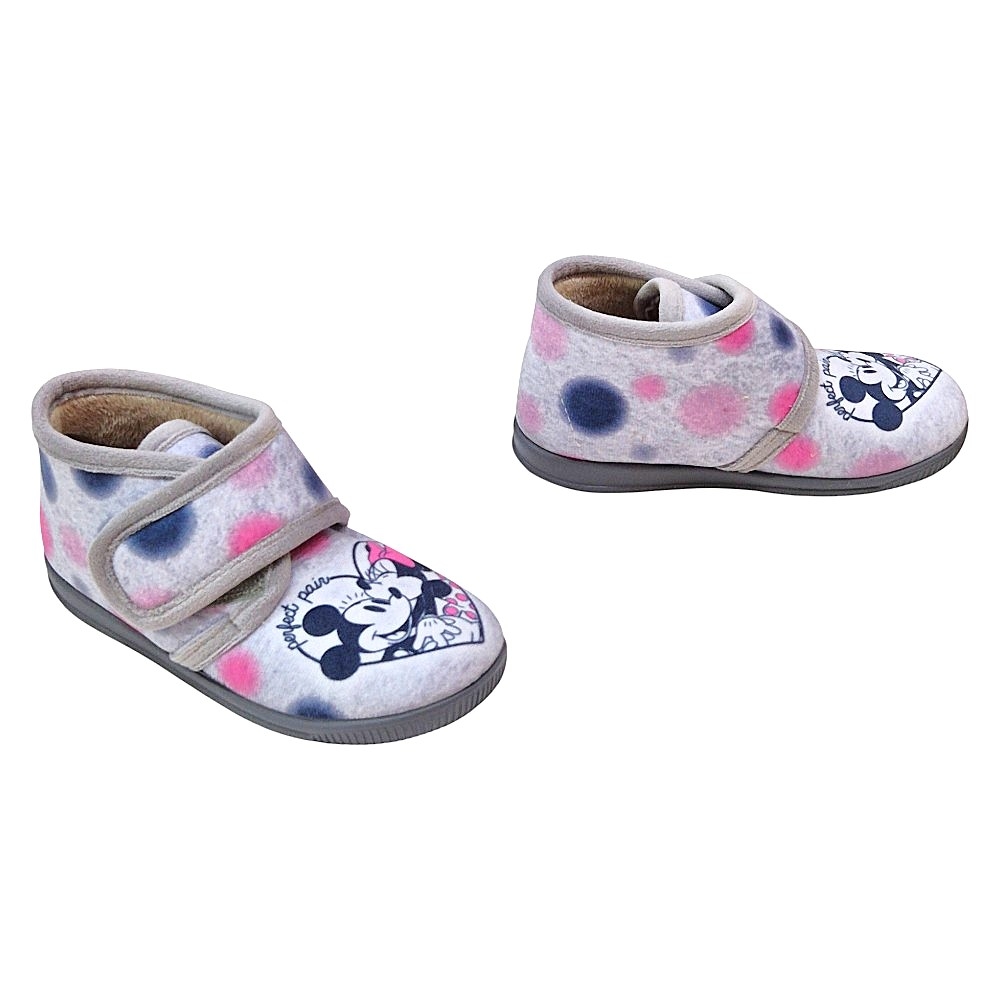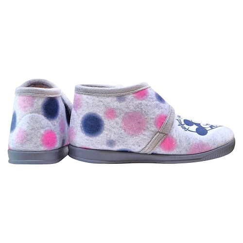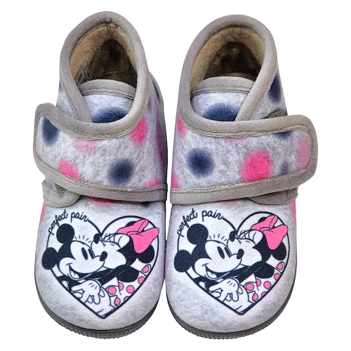 Estas zapatillas de casa, con su diseño en formato botín, son la elección ideal para mantener los pies de los más pequeños abrigados y cómodos. El tejido de suapel en color perla, adornado con lunares, ofrece una sensación de suavidad inigualable. El diseño central con los icónicos personajes de Mickey y Minnie Mouse añade un toque de encanto que los niños adorarán.
