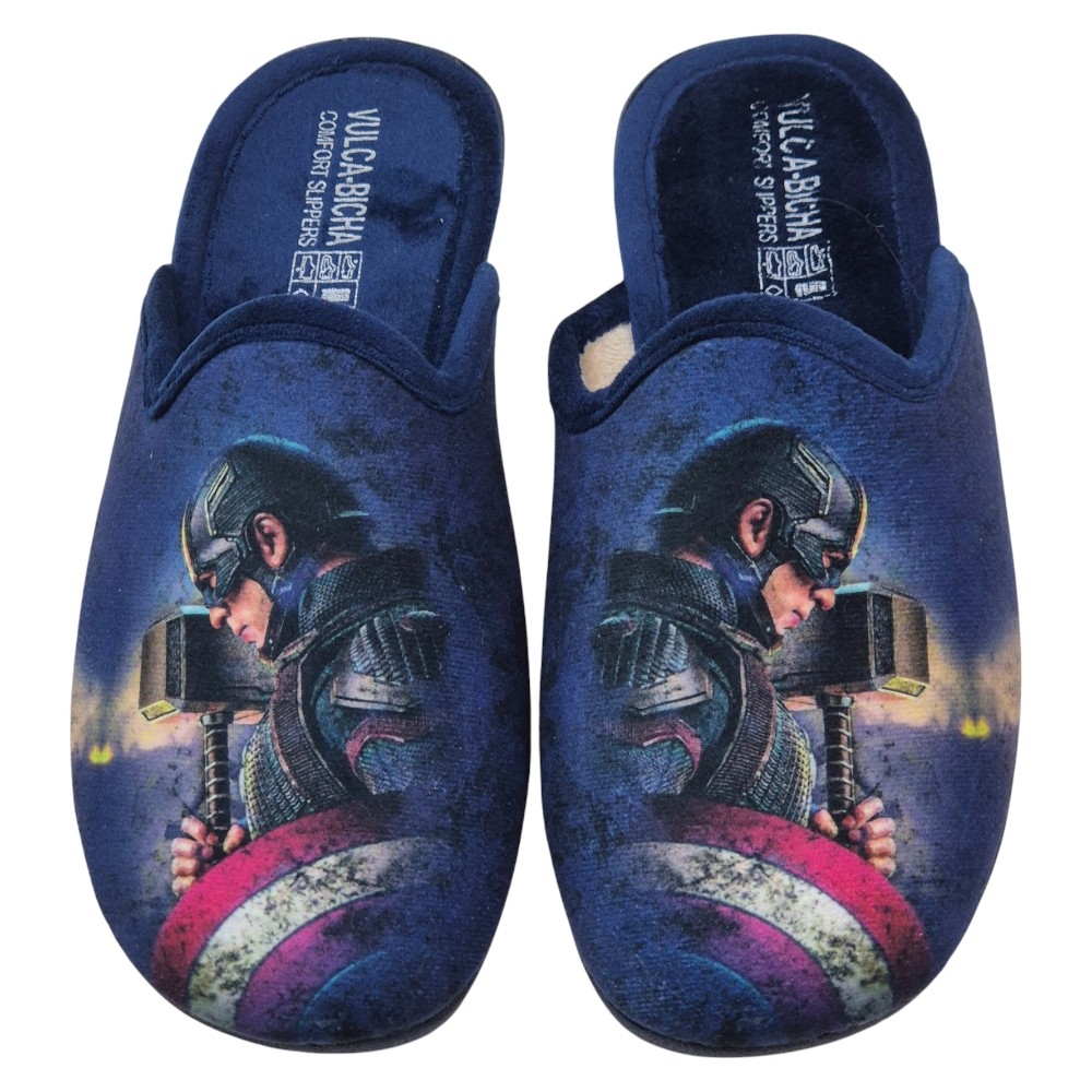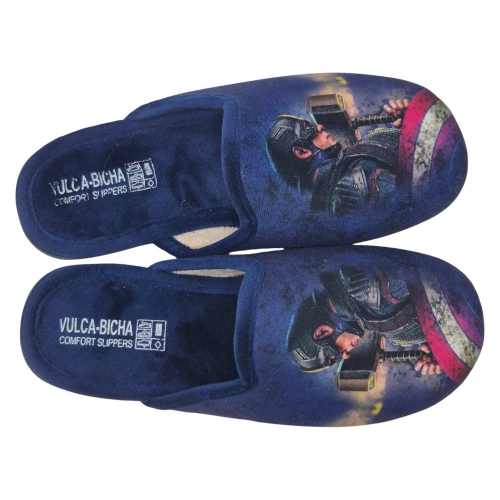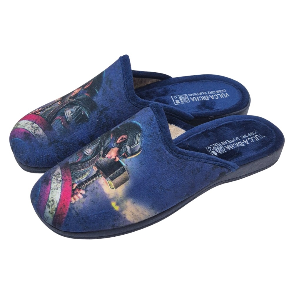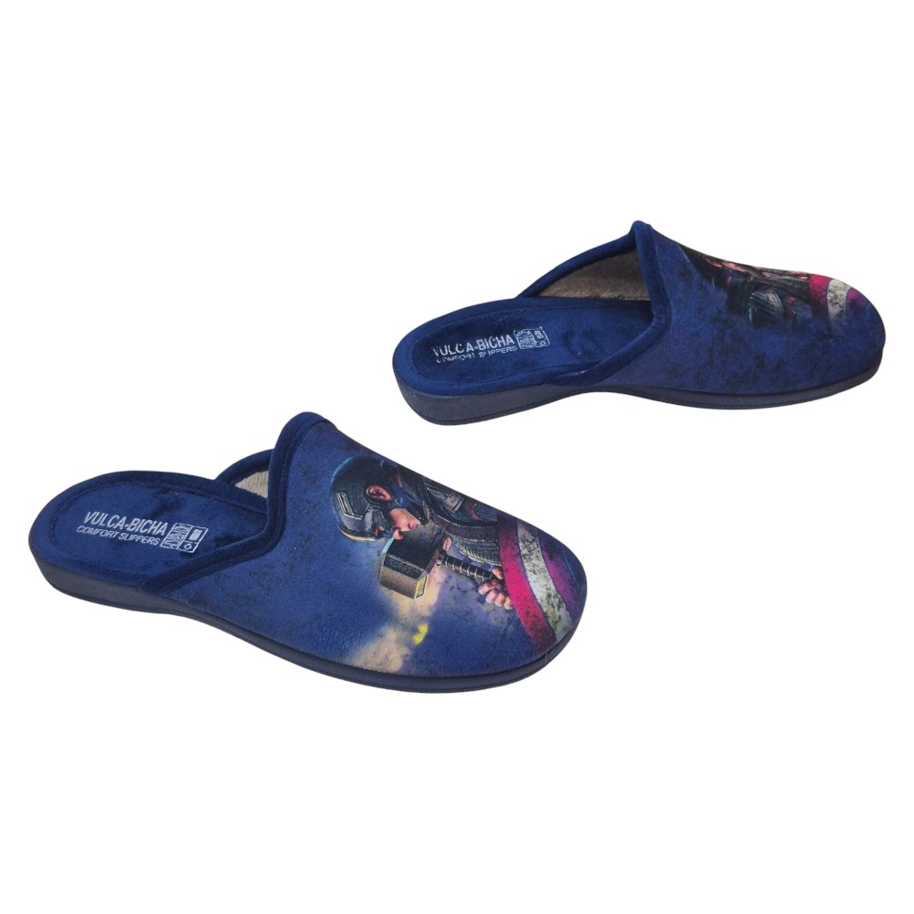 Estas zapatillas de casa de la marca Vulca-Bicha son el accesorio perfecto para cualquier pequeño fan de Marvel. El modelo presenta un diseño espectacular y llamativo sobre un fondo de color Azul Marino (GRENOBLE MARINO).
