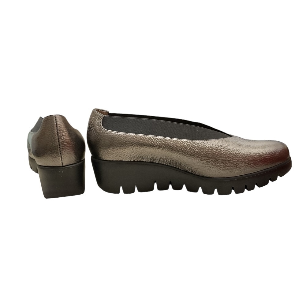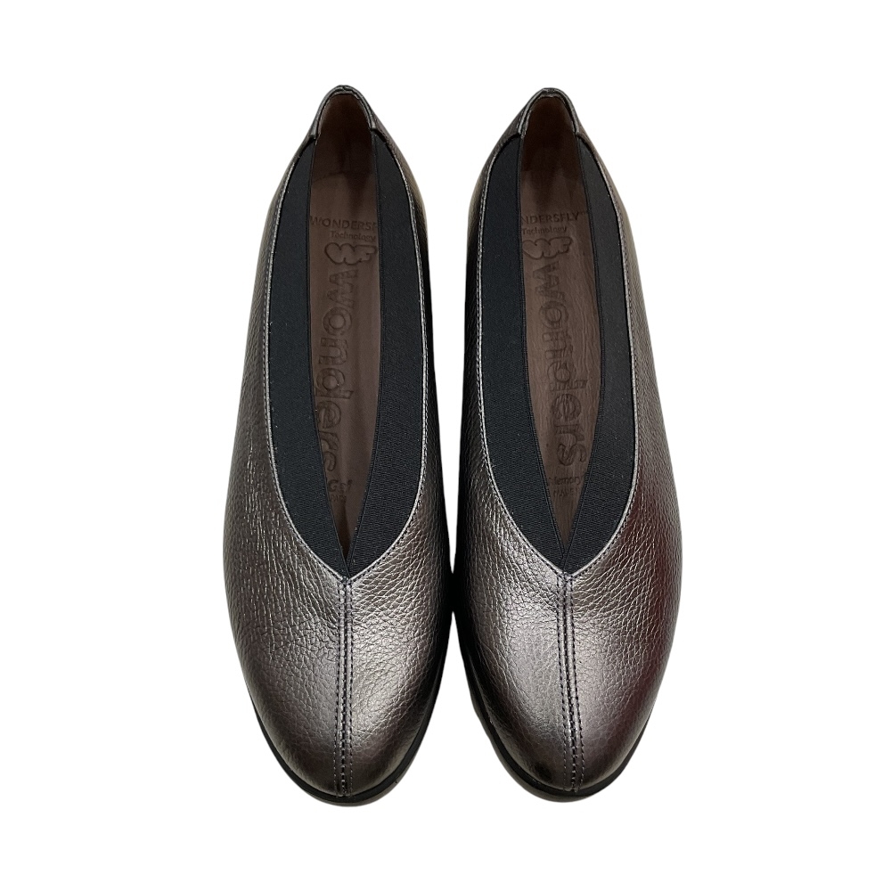 Zapatos de mujer AGADIR confeccionados en piel texturizada negra. Este modelo es uno de los más icónicos de Wonders, gracias a su comodidad y polivalencia, ahora reinventado con elástico en la zona del escote para perfeccionar aún más su ajuste. Su suela desarrollada con tecnología WondersFly™ ofrece una ligereza y confort extraordinarios. La plantilla interior de MemoryGel se adapta perfectamente a la forma del pie, proporcionando una comodidad excepcional en cada paso. ¡¡Prepárate para la sensación #yeswefly!! Wonders apoya la fabricación responsable vía LEATHERWORKINGGROUP.