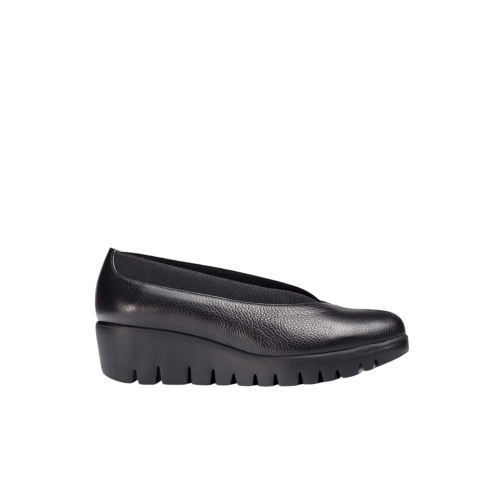 Zapatos de mujer AGADIR confeccionados en piel texturizada negra. Este modelo es uno de los más icónicos de Wonders, gracias a su confort y polivalencia, ahora reinventado con elástico en la zona del escote para perfeccionar aún más su ajuste. Su suela desarrollada con tecnología WondersFly™ ofrece una ligereza y confort extraordinarios. La plantilla interior de MemoryGel se adapta perfectamente a la forma del pie, proporcionando una comodidad excepcional en cada paso. Prepárate para la sensación #yeswefly!! Wonders apoya la fabricación responsable vía.