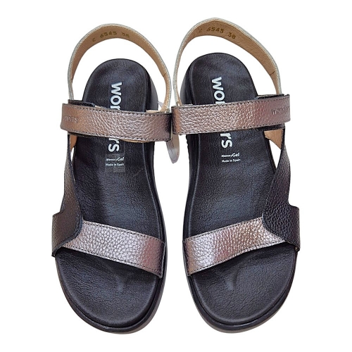 Sandalias planas HALI, fabricadas en una combinación de pieles y colores tono negro y plomo. Este diseño versátil incluye una tira en el empeine y otra trasera con cierre adherente, que aseguran un ajuste cómodo. La suela, desarrollada con tecnología WondersFly™, ofrece ligereza y confort, mientras que la plantilla interior de MemoryGel garantiza una experiencia ergonómica en cada paso. Prepárate para la sensación #YesWeFly. Wonders apoya la fabricación responsable avalada por LEATHERWORKINGGROUP.