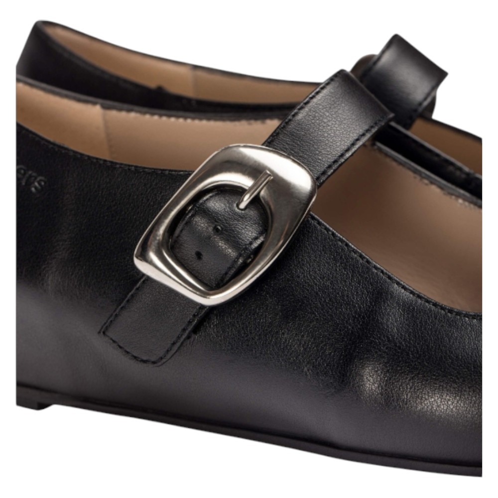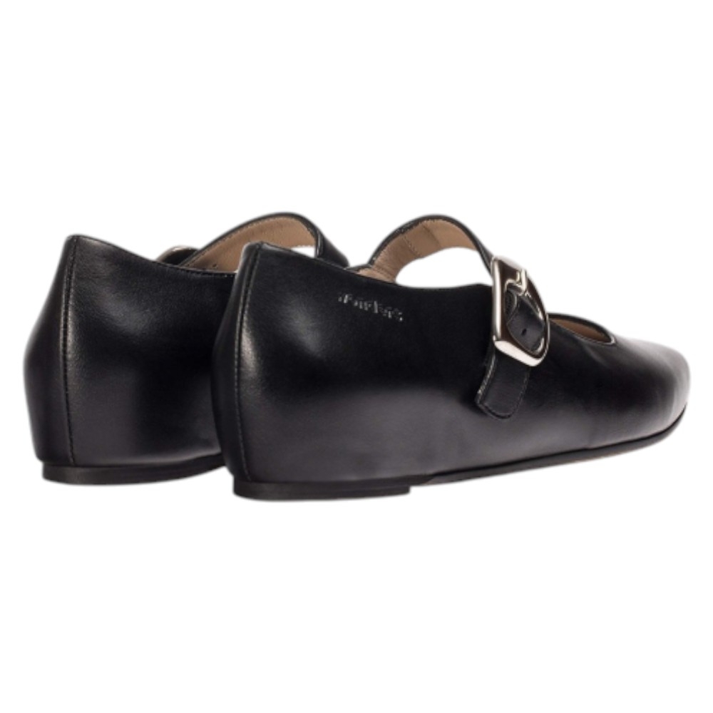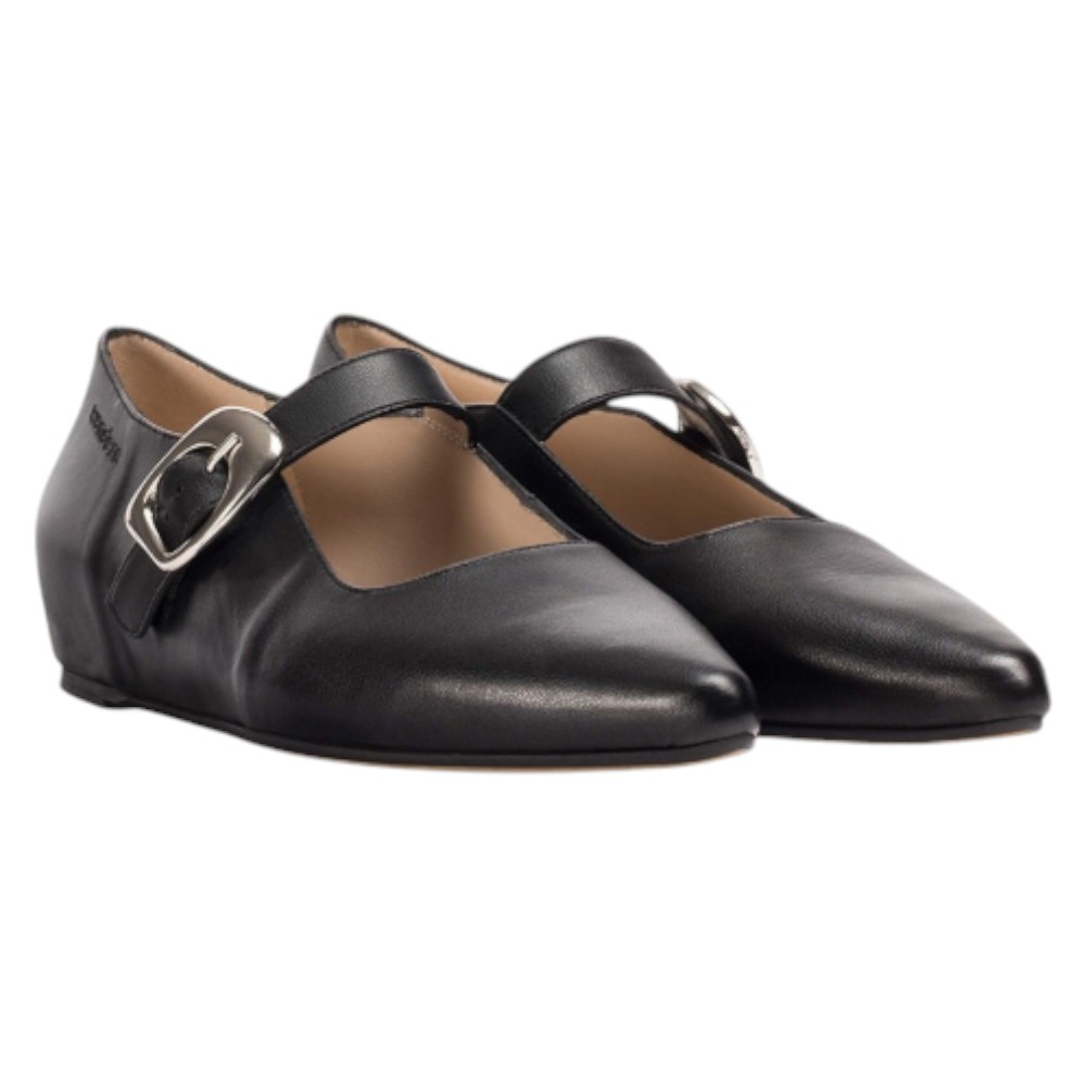 Descubre la perfecta fusión de estilo clásico y diseño contemporáneo con las bailarinas Merceditas TRIANA 30 de WONDERS. Confeccionadas íntegramente en suave piel lisa negra de vacuno, este calzado reinventa la silueta tradicional de la mercedita con una elegante punta afilada que estiliza el pie.