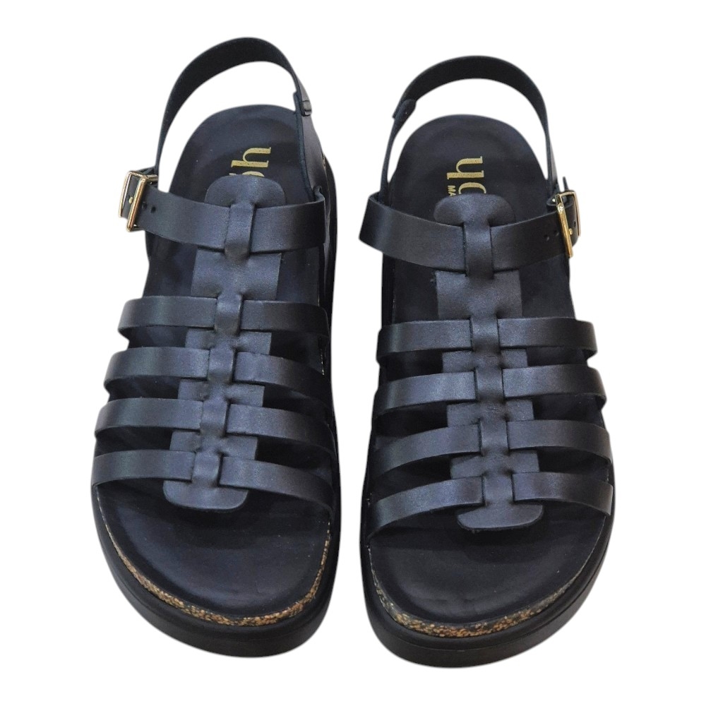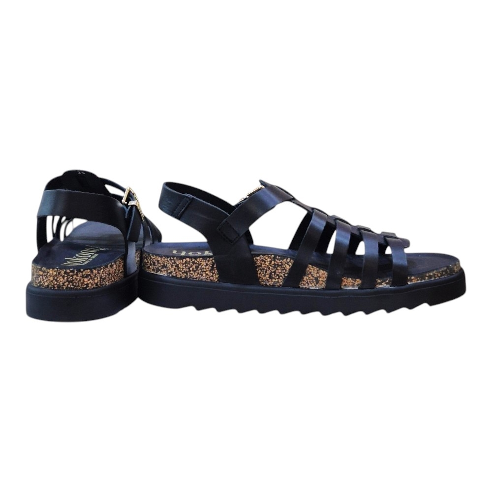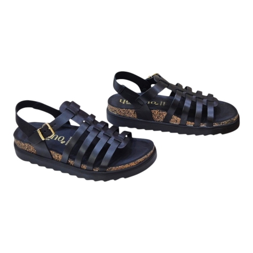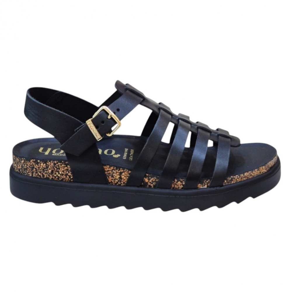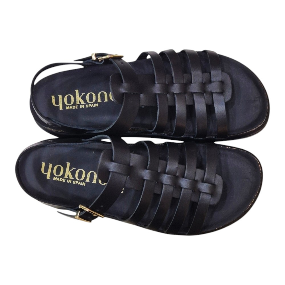 Las Yokono TUNEZ-107 son mucho más que unas sandalias son el equilibrio entre la tradición zapatera española y las tendencias más actuales. Su color negro profundo y sus detalles dorados las convierten en el básico "con un toque" que combinará tanto con tus vestidos favoritos como con unos jeans de corte moderno.