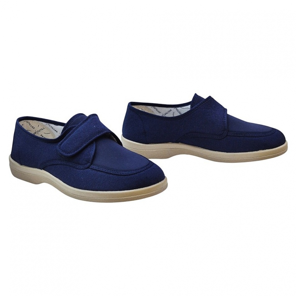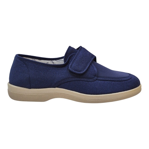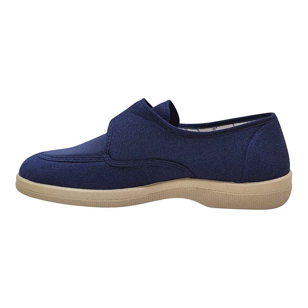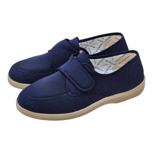 El modelo 21300 destaca por su amplia apertura superior, que permite calzarse de forma rápida y sencilla. Gracias a su sistema de cierre mediante tira ajustable, el calzado se adapta perfectamente al empeine de cada usuario, garantizando una sujeción firme pero sin presiones molestas. Su tejido exterior en color marino es suave al tacto y ofrece una flexibilidad excepcional que acompaña el movimiento natural del pie.