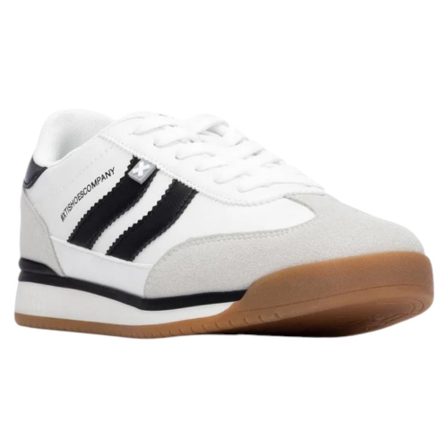 Diseño Vanguardista: Confeccionadas en un material que imita la piel de alta calidad, estas zapatillas presentan un diseño retro-urbano con detalles en contraste. Las icónicas franjas laterales en color negro y los refuerzos en material tipo serraje en la puntera y el talón, junto a una suela de goma color caramelo, le otorgan un look sofisticado y atemporal.