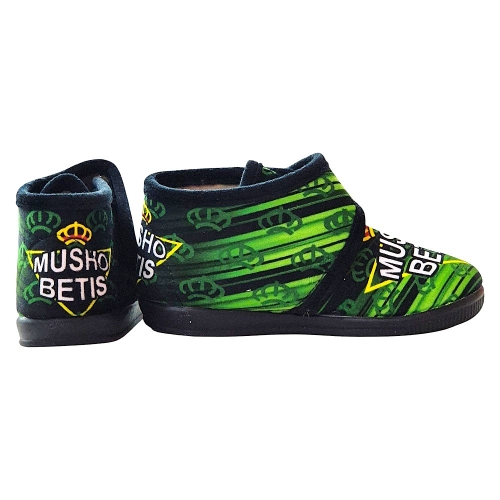 Demuestra tu pasión verdiblanca en cada rincón de tu hogar con estas originales y cómodas zapatillas de casa del Real Betis Balompié. Perfectas para los auténticos béticos que desean llevar los colores de su equipo en sus momentos de relax.