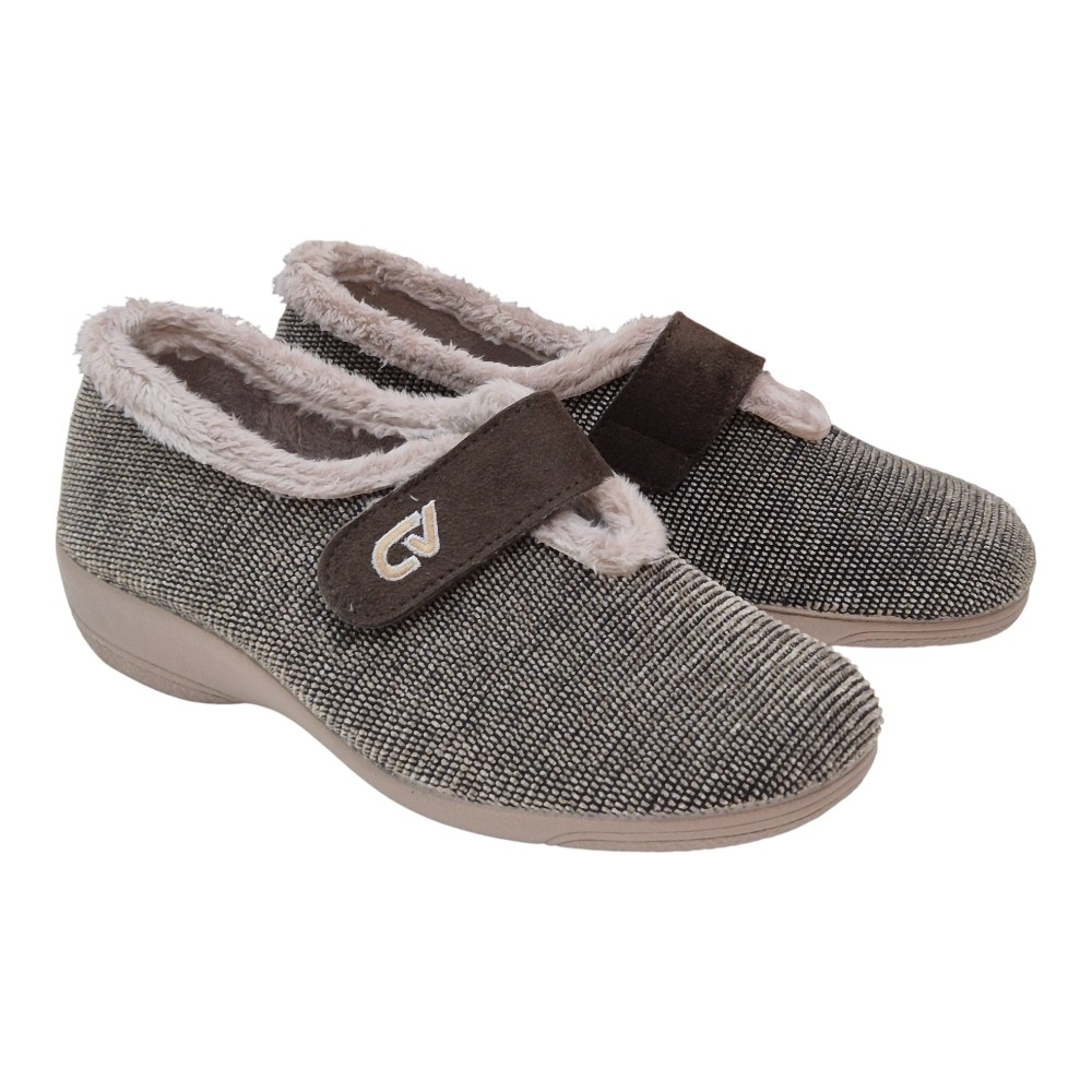 Las zapatillas Cabrera modelo 5633 representan el equilibrio perfecto entre bienestar y funcionalidad para el hogar. Este calzado, diseñado y fabricado en España, destaca por su elegante tono visón y una textura exterior que combina matices oscuros y claros en un relieve sutil. Son la elección ideal para quienes priorizan un calzado térmico que cuide sus pies durante los días más fríos.