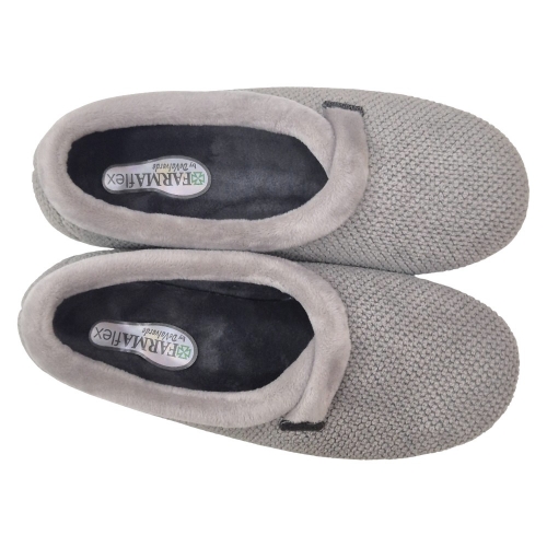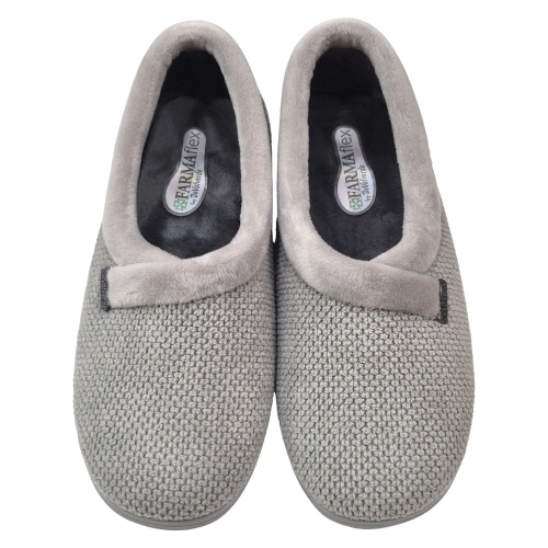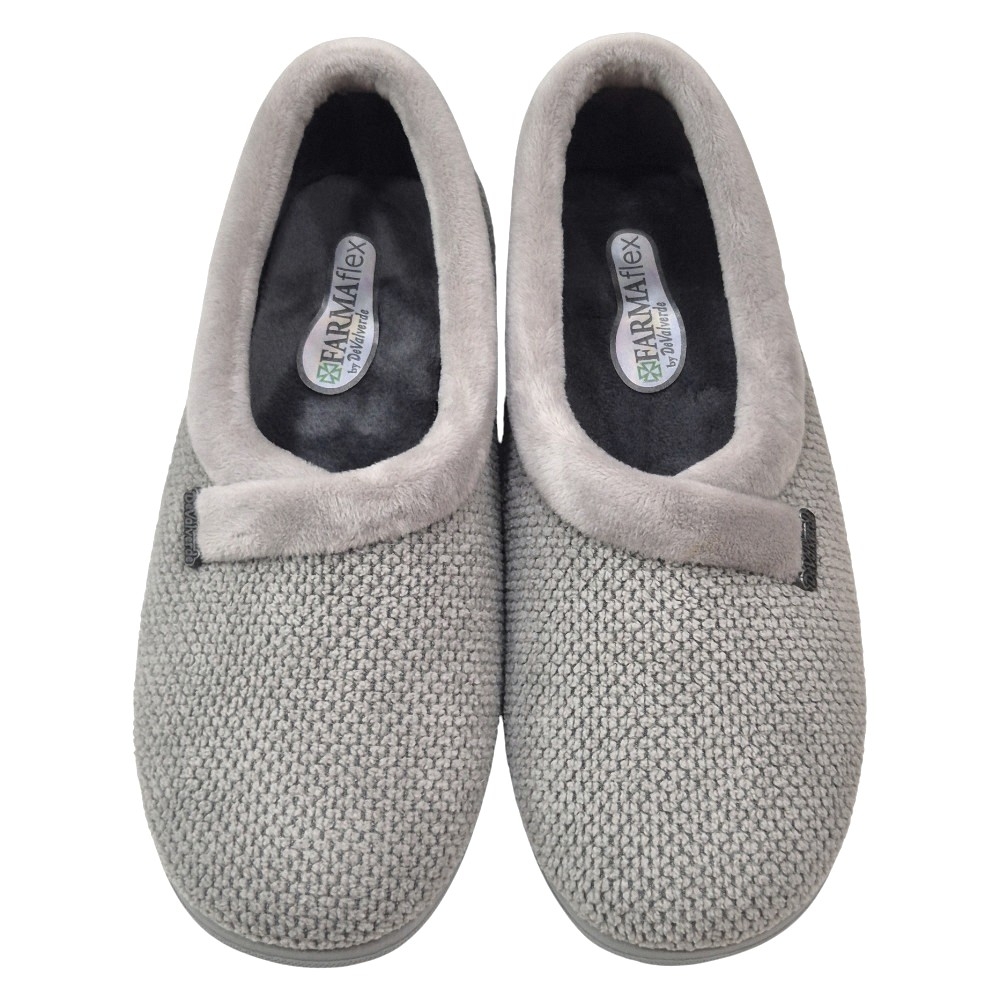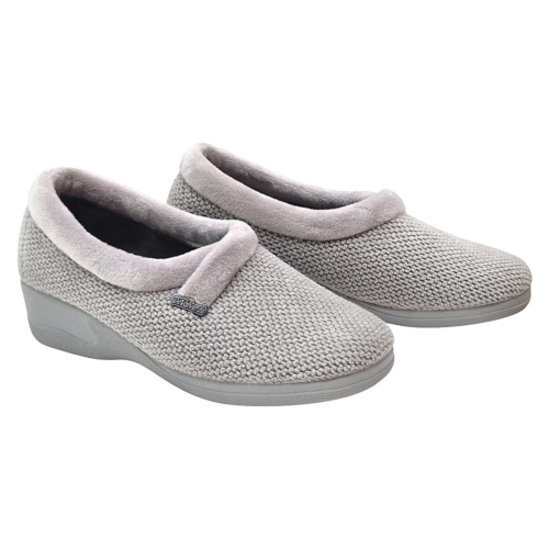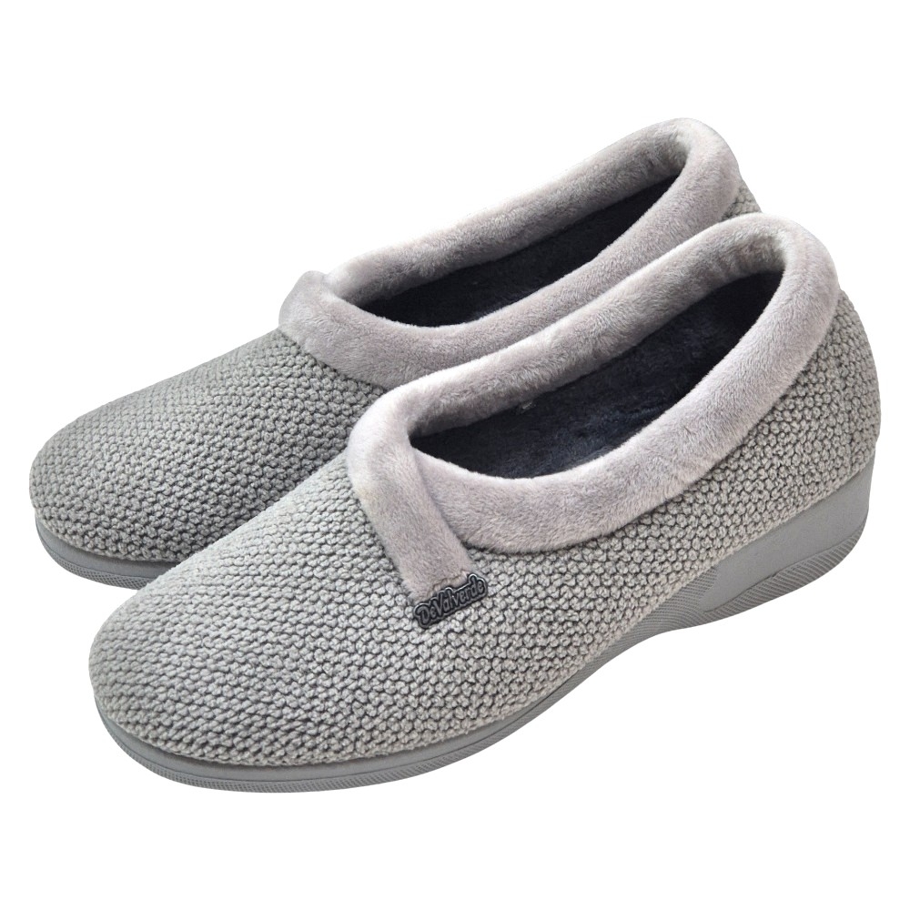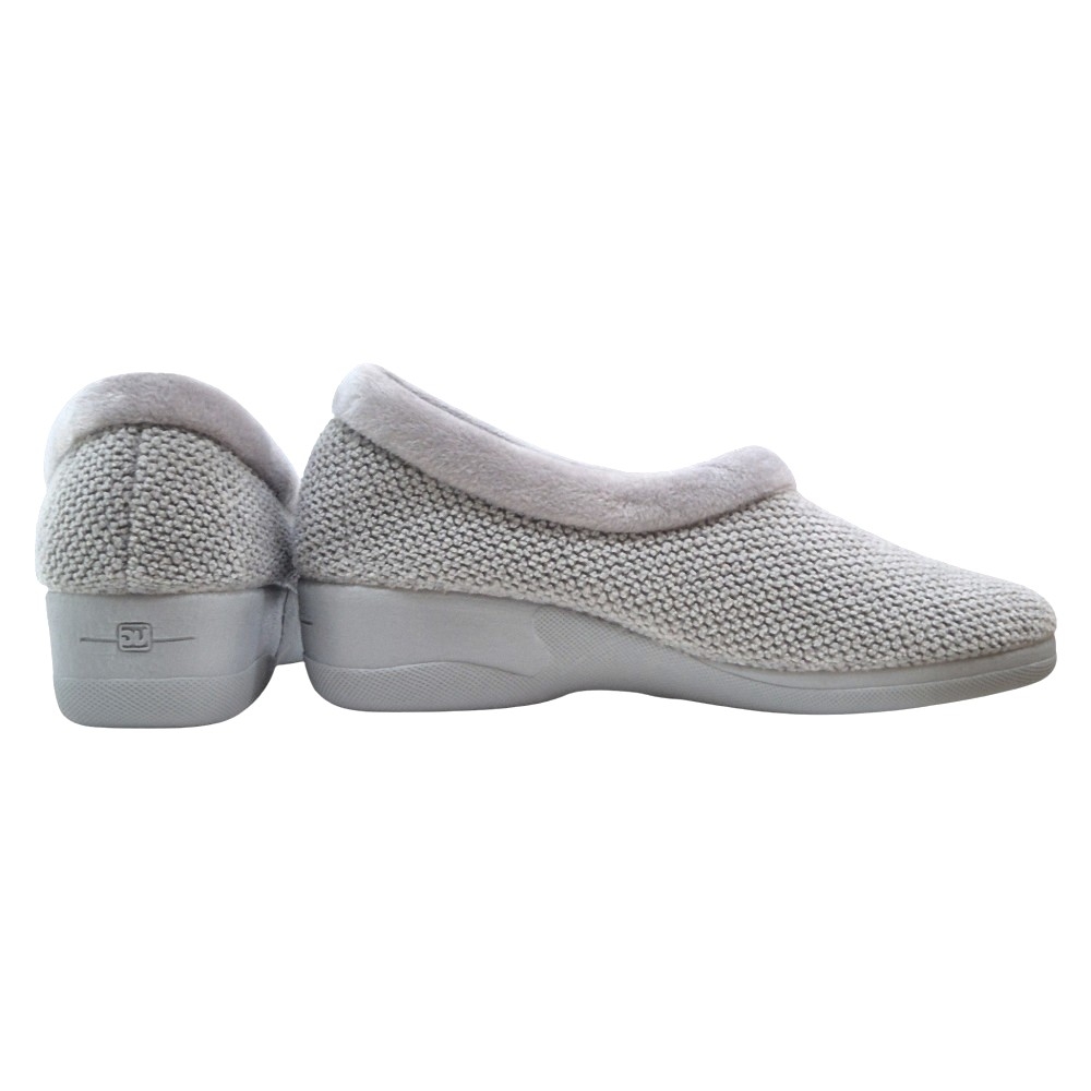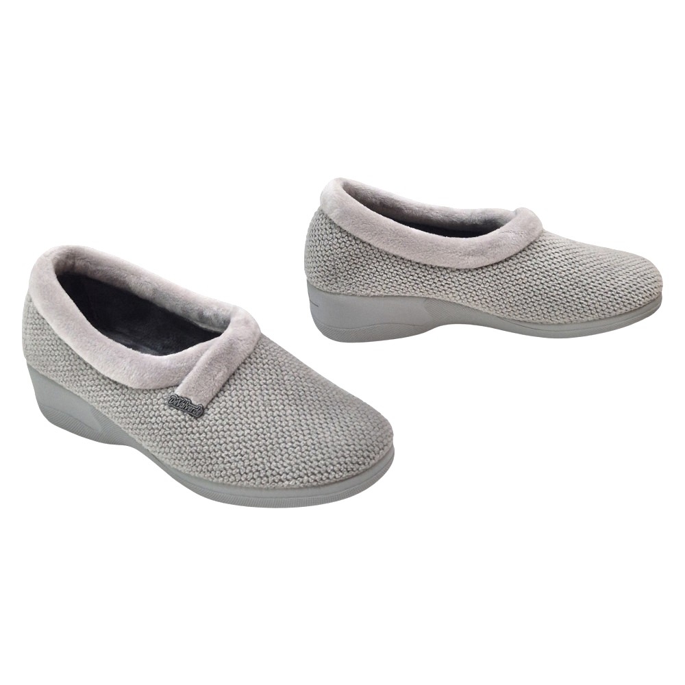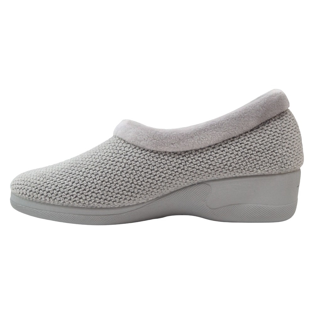 Diseño Clásico para Excelente Sujeción: Su estilo cerrado tipo mocasín o bailarina asegura una sujeción completa y segura en el talón. El color gris es versátil y atemporal, fácil de combinar con tu ropa de estar en casa.