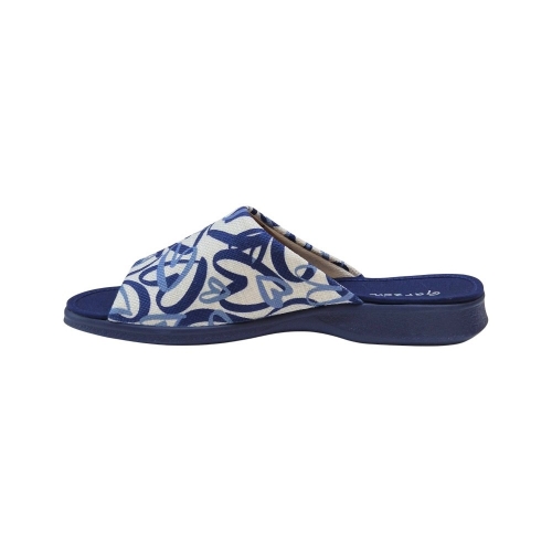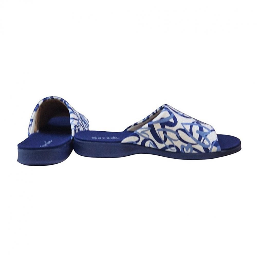 El modelo destaca por su elegante estampado de corazones entrelazados en tonos azules sobre un fondo crema de textura tipo lino, aportando un aire romántico y sofisticado. Su acabado en color Tudor Marino es versátil y atemporal, ideal para estar en casa con un toque de distinción.