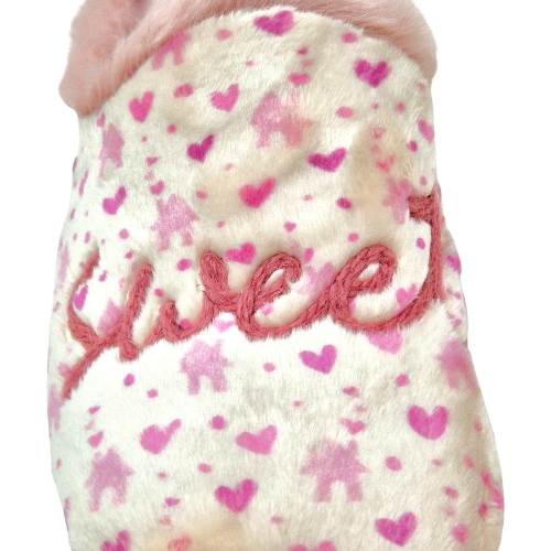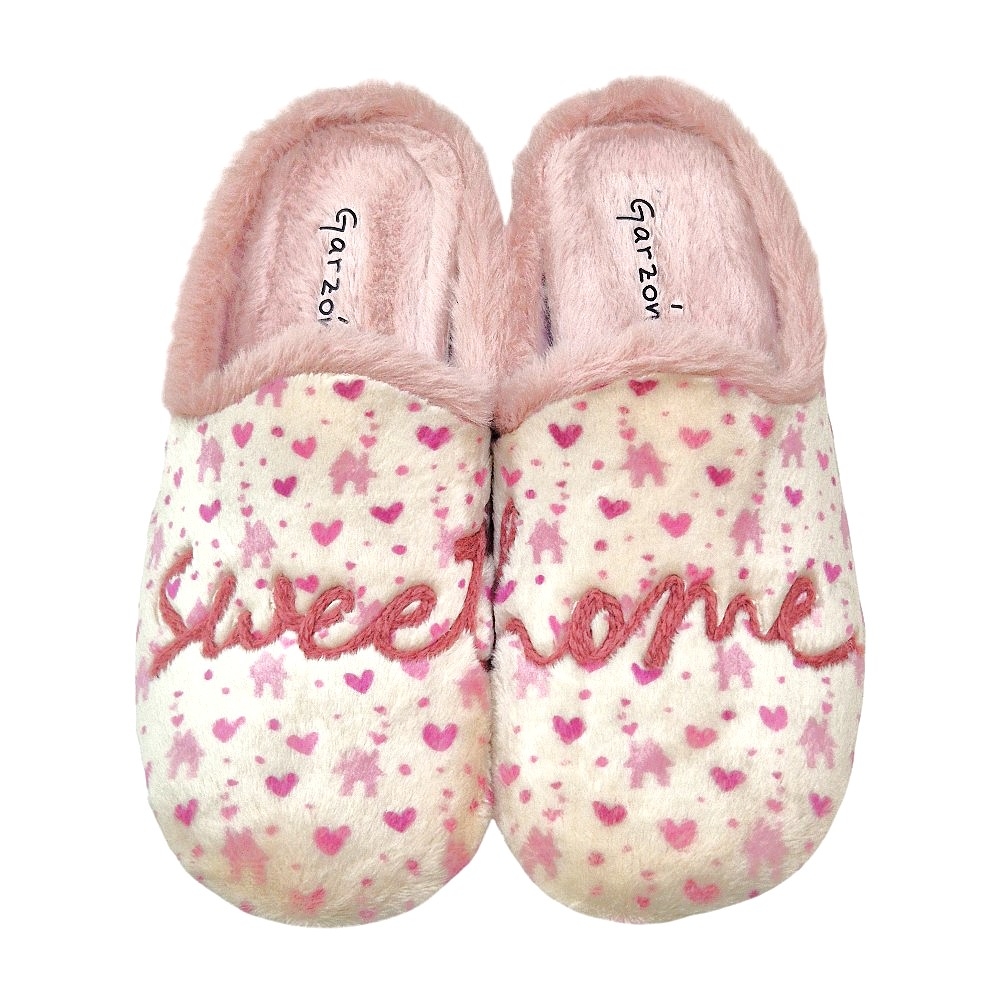 Detalle Decorativo: En la pala de la zapatilla destaca un bordado en relieve con la frase "Sweet Home" en hilo de color rosa malva, aportando un toque acogedor y hogareño al diseño.