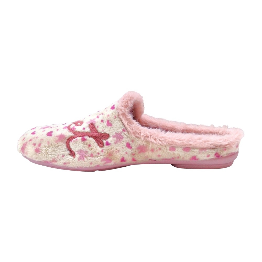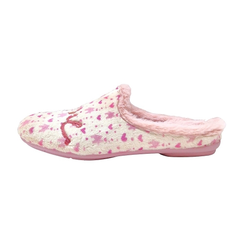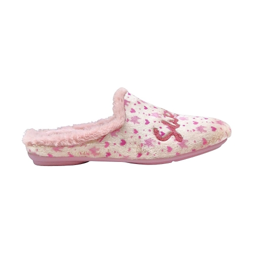 Se trata de una zapatilla de casa tipo chinela o mule, con un diseño destalonado que facilita el calce rápido y sencillo.