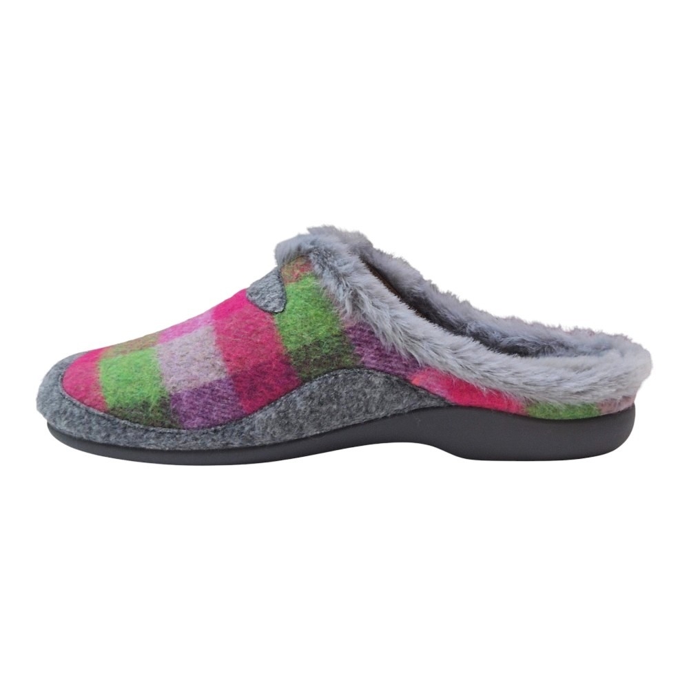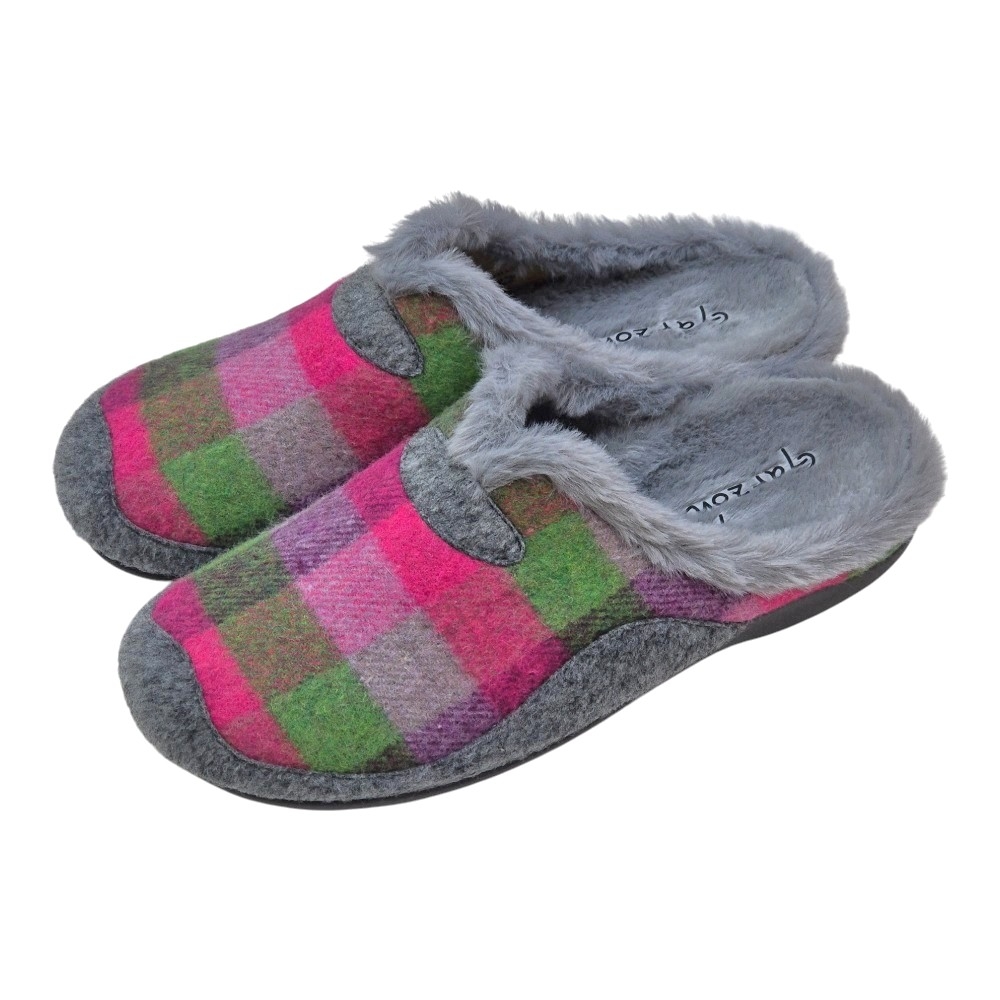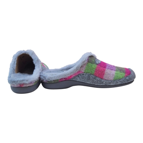 El modelo destaca por su estampado de cuadros tipo "Pozzuoli", que mezcla tonos fucsia, verde lima y violeta sobre una base gris, aportando un toque de color y alegría a tu ropa de descanso. Su acabado en tejido de lana suave no solo es estéticamente atractivo, sino que garantiza calidez desde el primer momento.